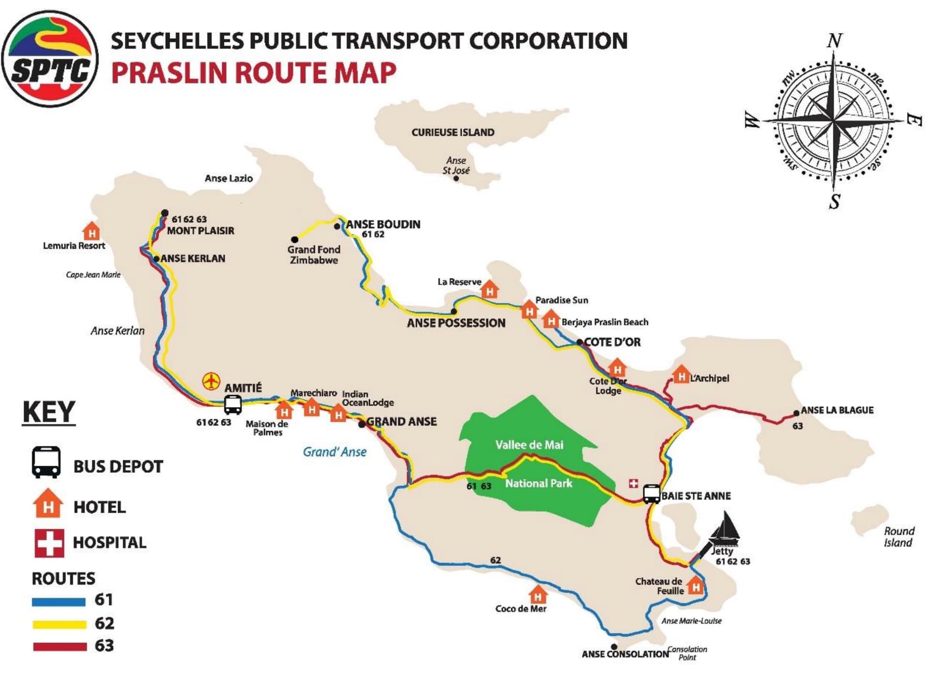 本島馬埃島以及第二大島普拉蘭公共交通發達, 只在兩島通勤的話坐公車沒問題, 唯要注意公車末班車大多六點半左右, 吃晚餐要多注意時間.