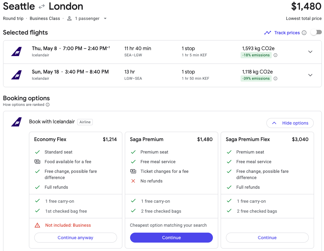 至少我看到西雅图到伦敦/巴黎/柏林等有往返1500左右的Saga Premium,还能回血距离1.25x的AS冥币。疫情后期DL/BA的超经也差不多这个价,不过这两年都应该比这要贵。