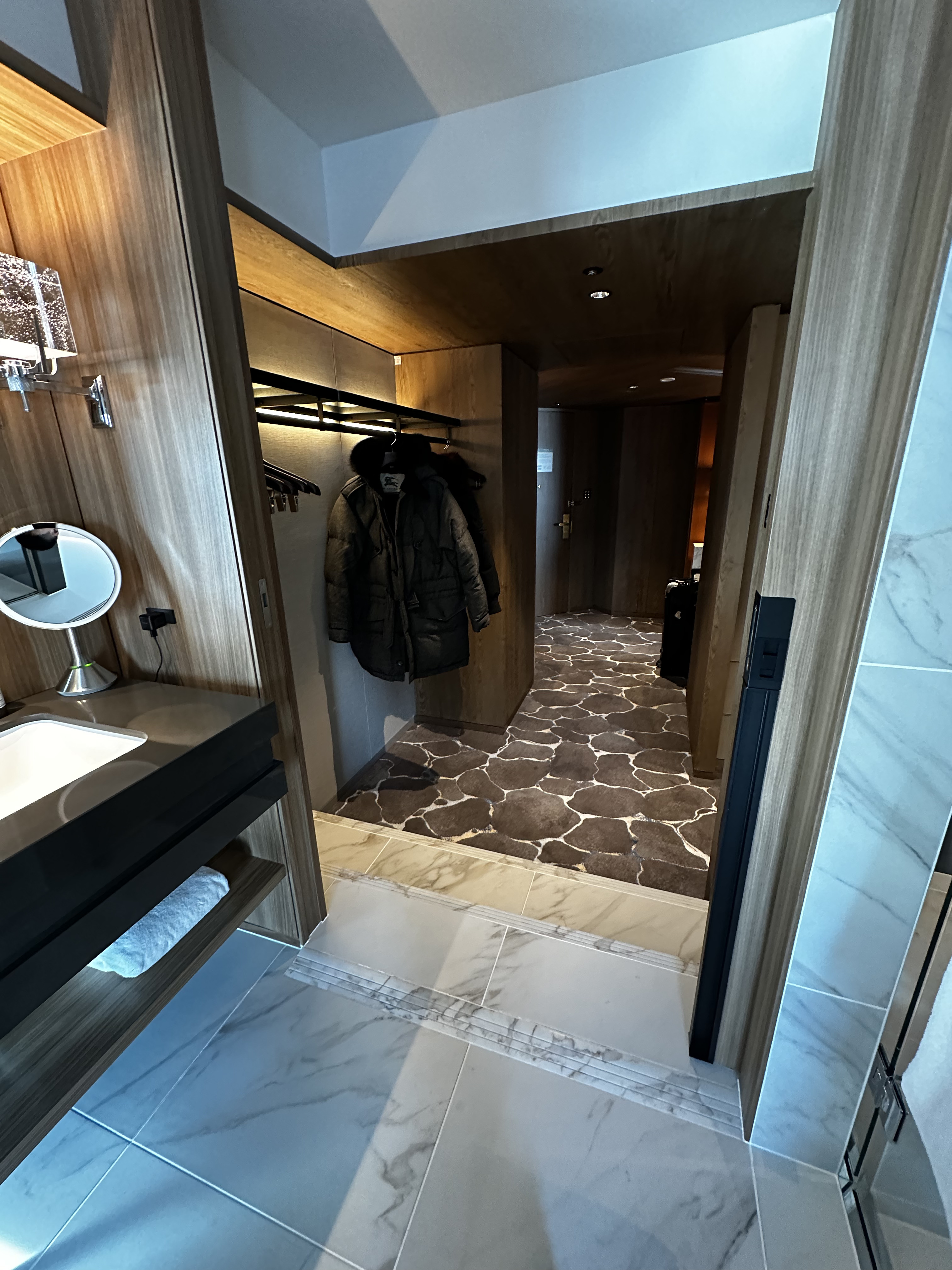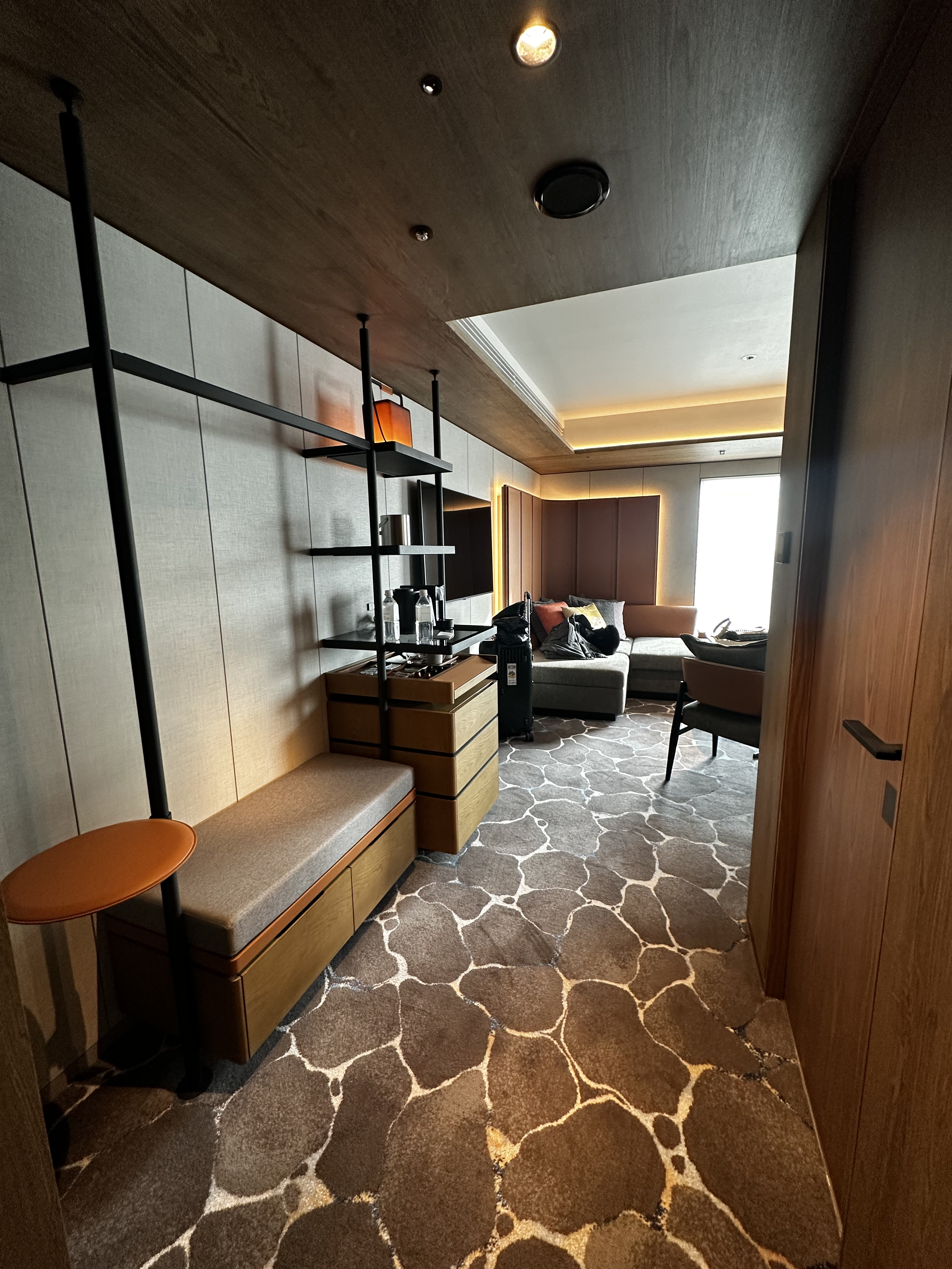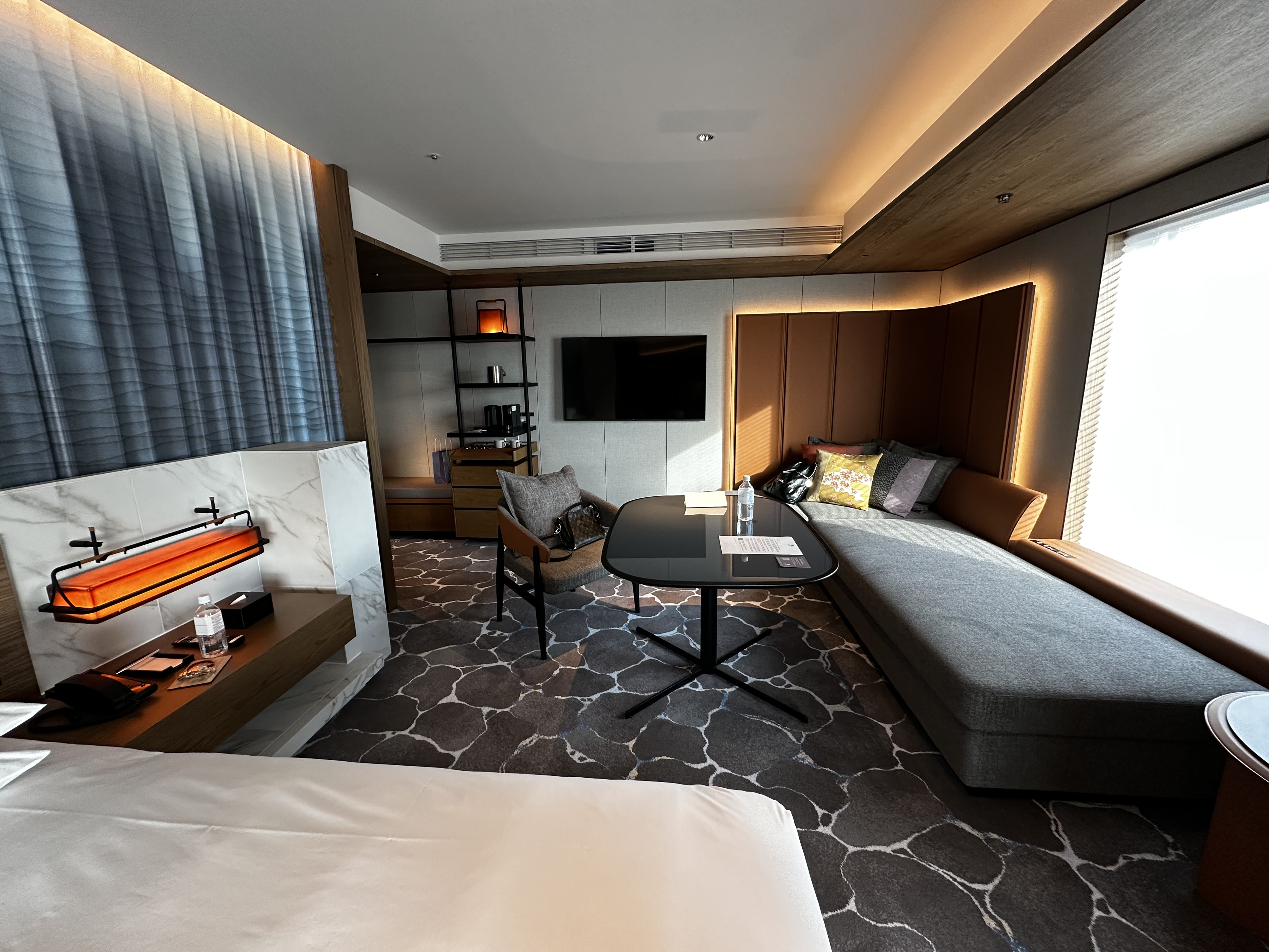 12月底的时候入住的。当时新装修的房间11月刚放出来卖,协议价却忘记更新价格,所以用乞丐房的价格订到了角房Studio,应该是酒店目前新装修出来的房间里最好的一套了。