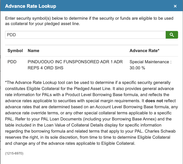 Schwab 的security loan其实maintenance要求不低,我记得是40%