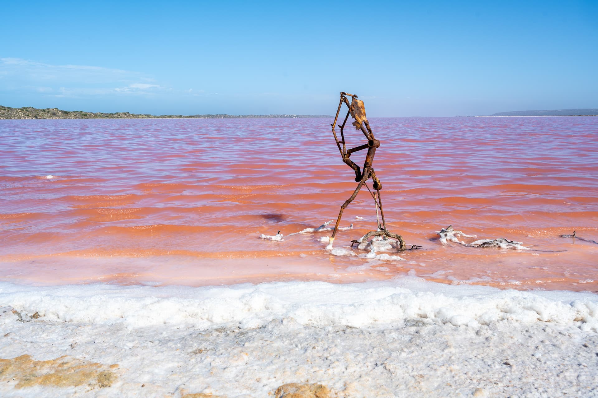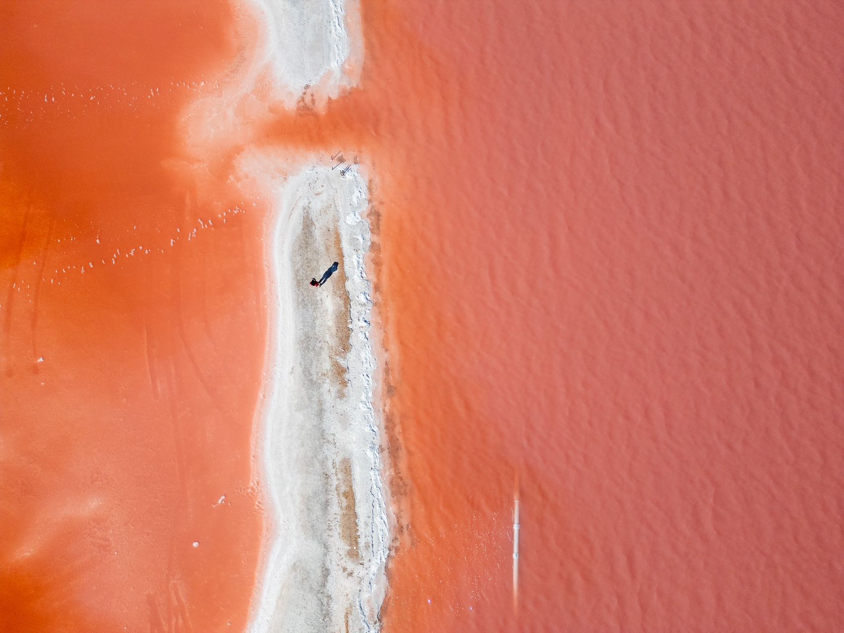 从盐湖东侧向南绕湖,远远地就看到了湖对面路边的各色人影,不用想也知道是国人小姐姐们的糖水片……粉红湖西岸有着广布的盐滩,甚至还有一些废土元素,也确实适合拍照。