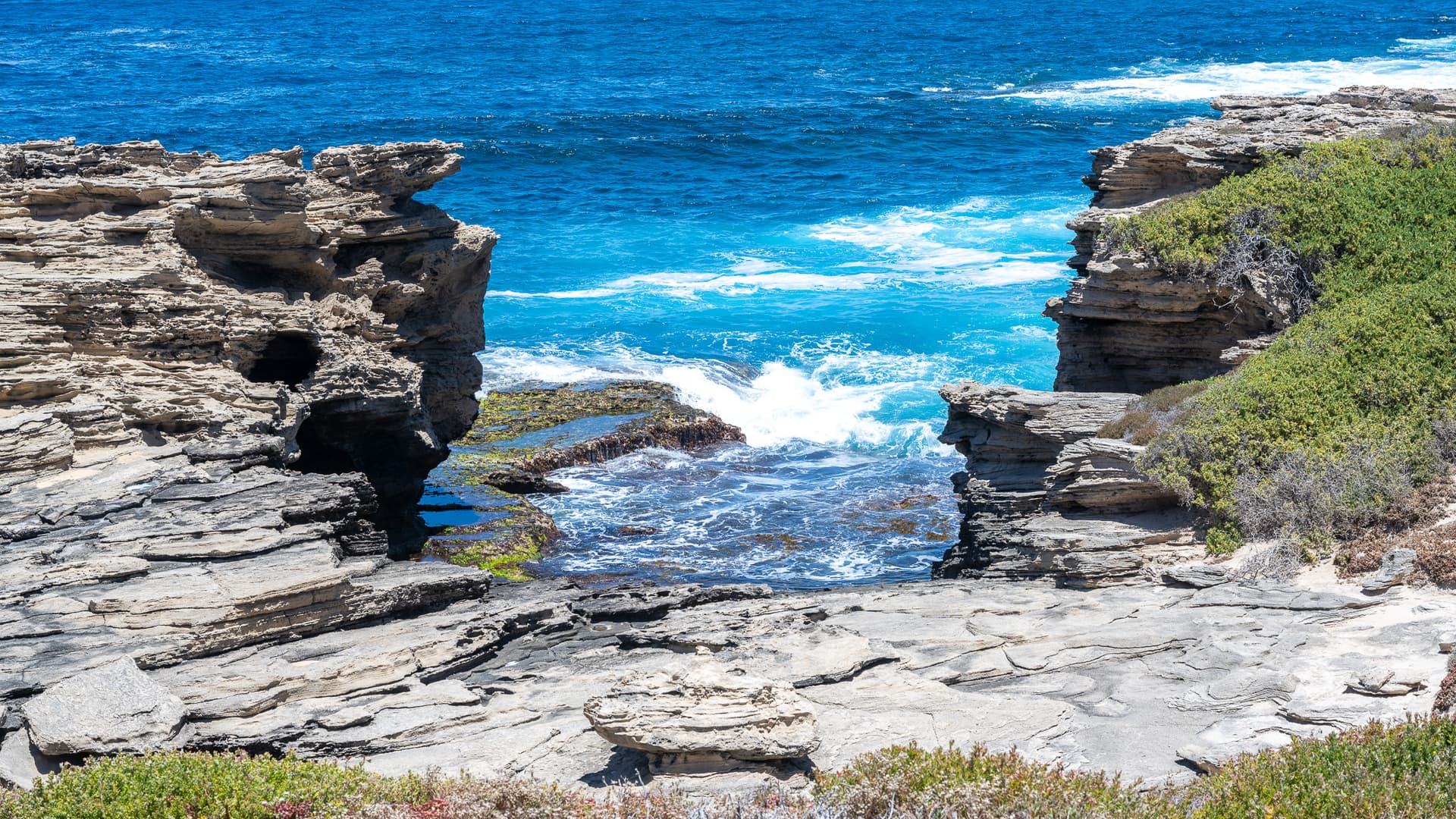 从水中出来已不觉得炎热,继续坐观光车到达Rottnest岛屿的最西端,海岸山崖与多肉植物不由得让人想起加州的一号公路。