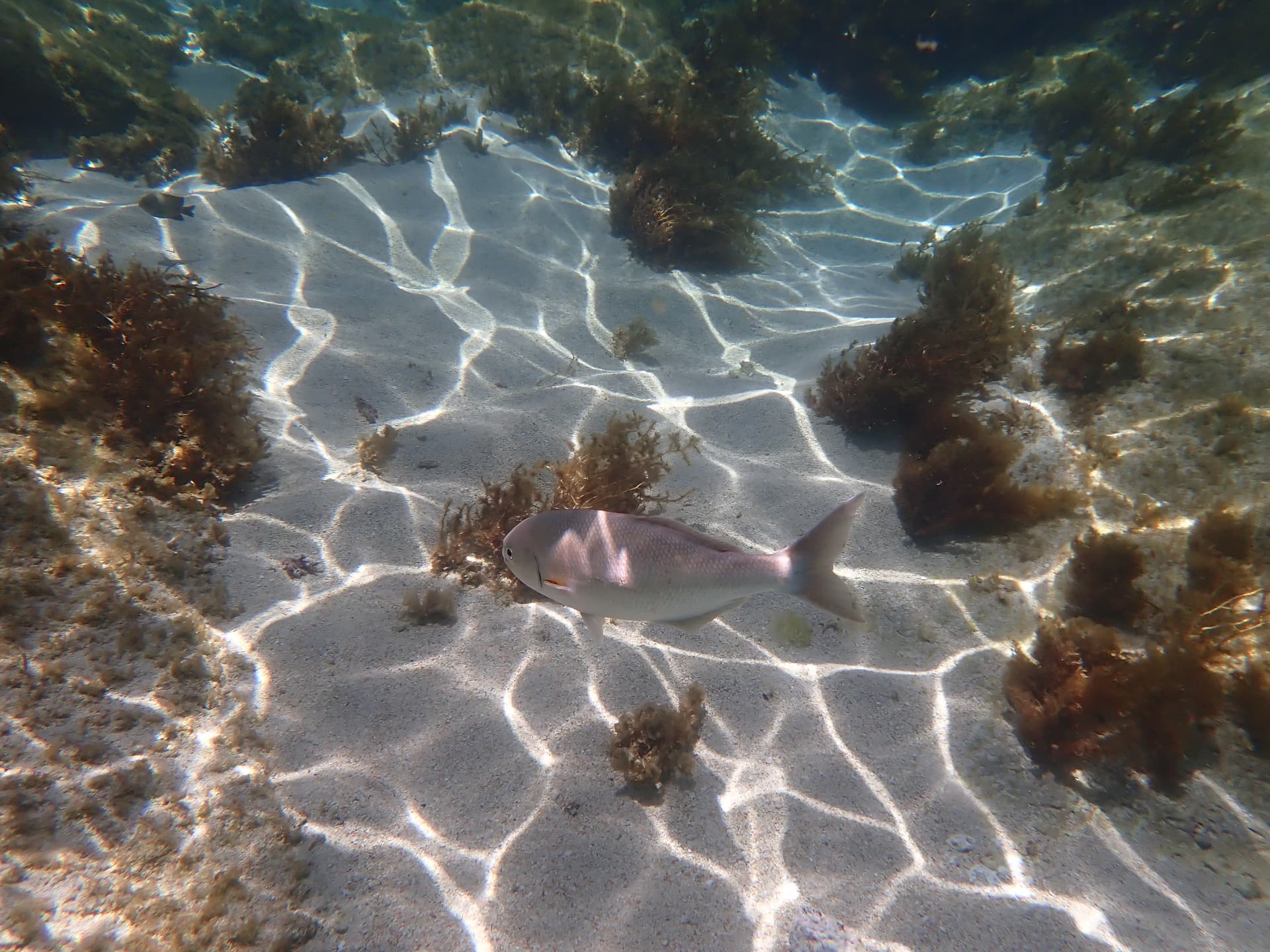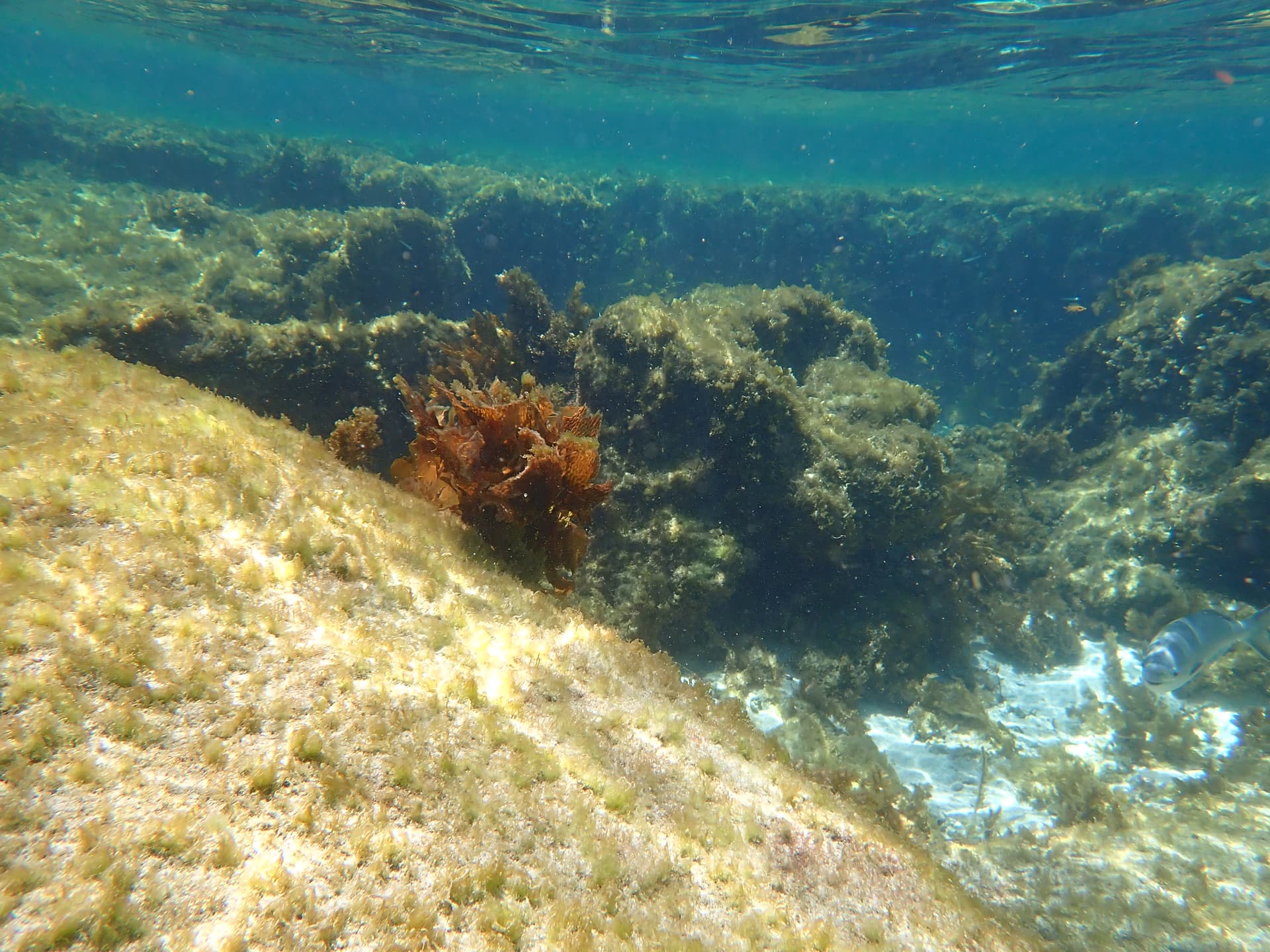逐渐开始有珊瑚夹杂在海草之间,让我想起了墨西哥的Los Cabos。
