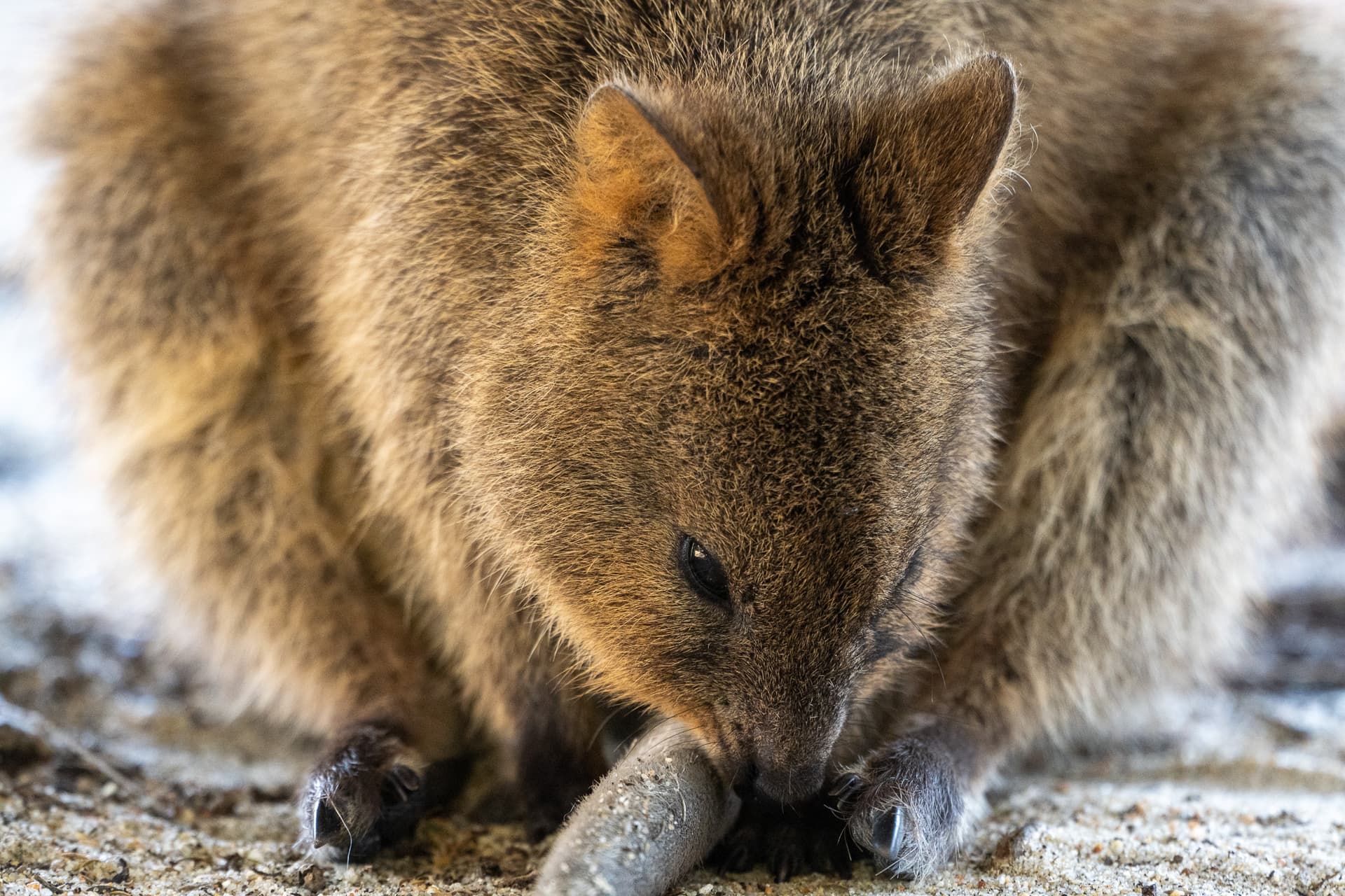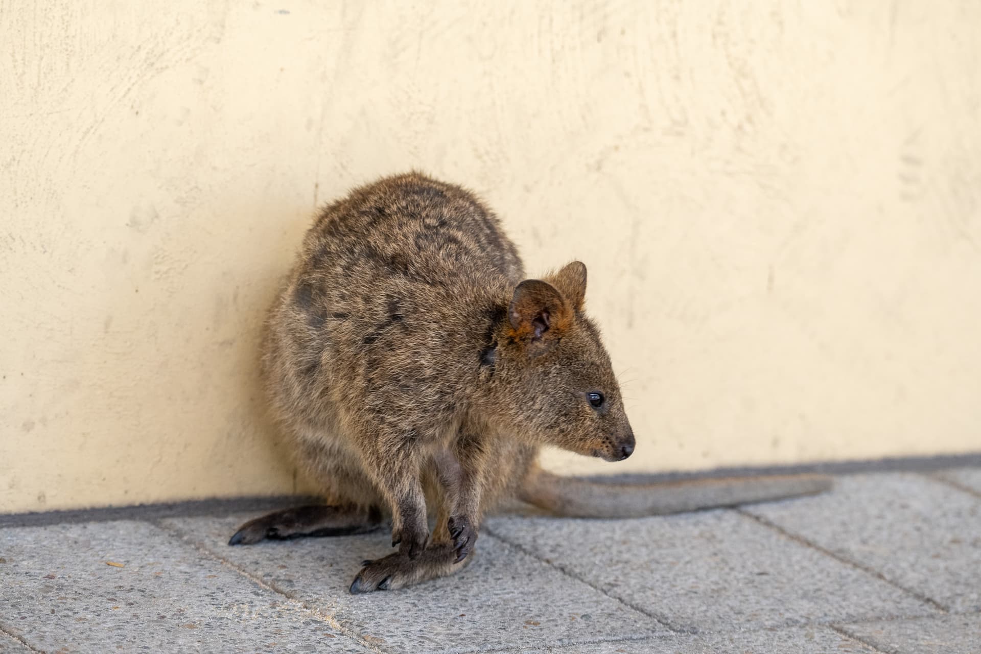 中午时回到Rottnest岛的码头小镇,Quokka们已经系数出动——从长椅下面到垃圾桶里再到路边的犄角旮旯,它们可能会从各种地方冒出来。论长相其实它们长得就是一张大耗子脸,论生活习性它们也日常翻垃圾桶,只不过没有大耗子那粉红色没有毛的尾巴,所以看起来没那么讨人厌而已。