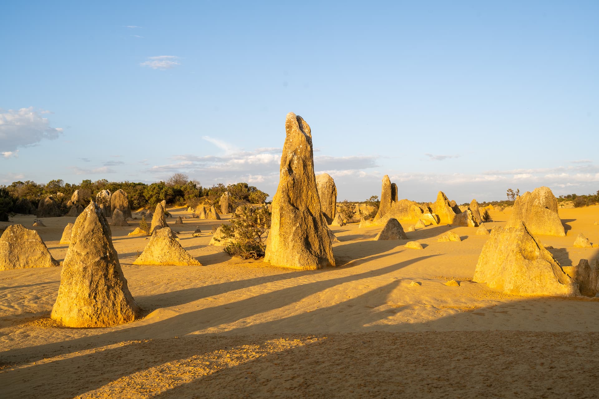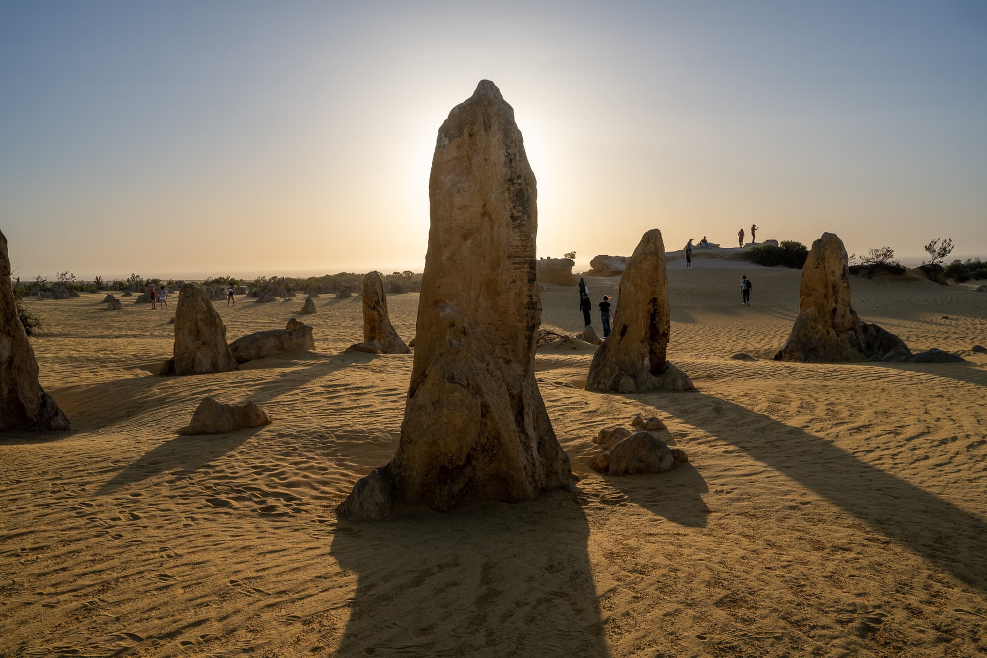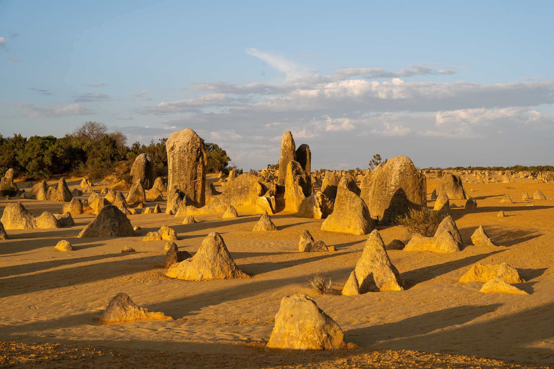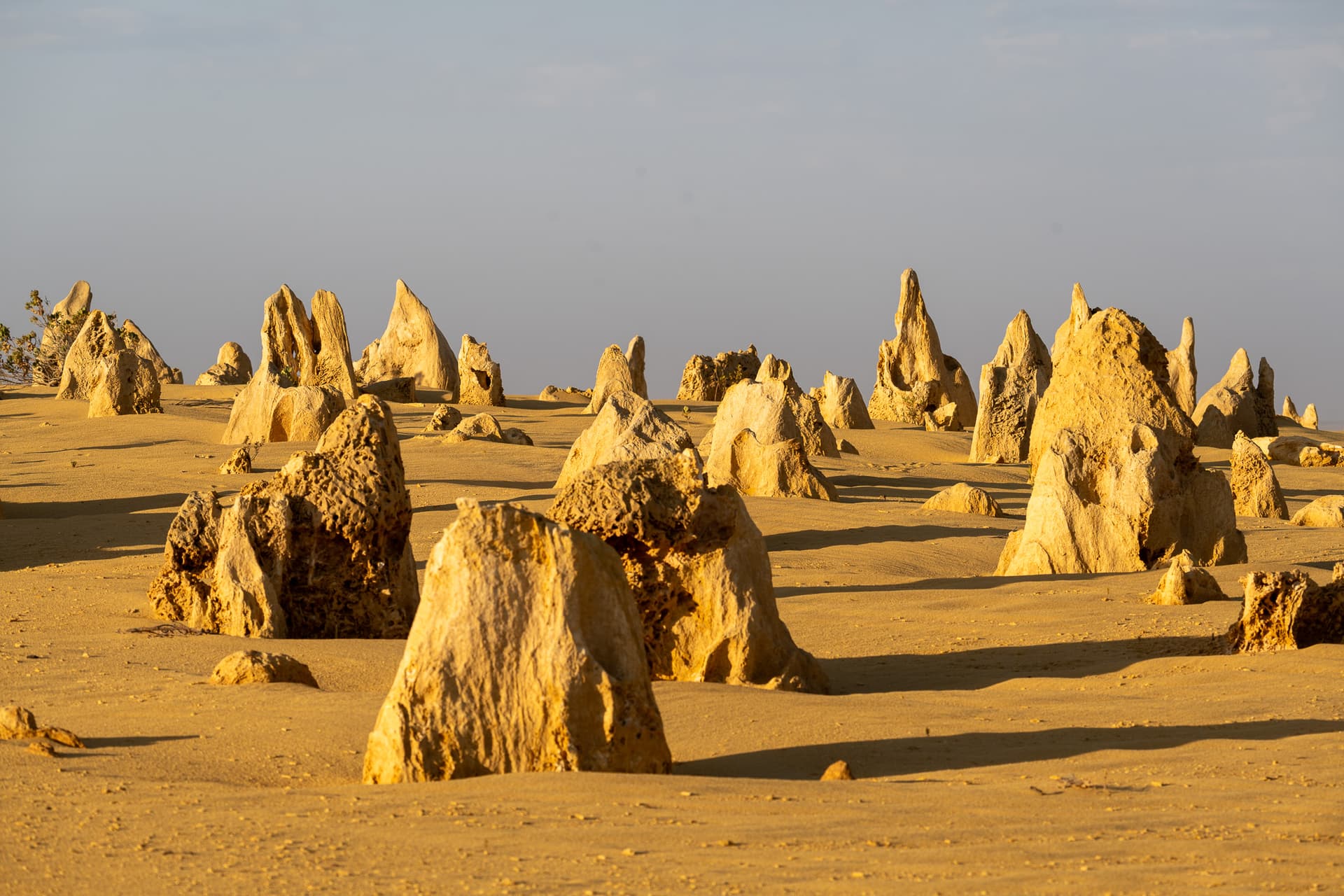 下午两点钟坐船回到Perth码头后便一刻不停地往北开,今日的下一站是Perth北边两个半小时的尖峰沙漠(Pinnacles Desert)。众所周知,美国同名的Pinnacles国家公园常年被评为最水国家公园前几名,不过澳大利亚这里的Pinnacles和美国的水货可以说是八竿子打不着——这边的尖峰来源于古海床的贝壳沉积形成的石灰岩被侵蚀的结果,甚至可以算是喀斯特地貌了,所以出片程度也自然是顶级。