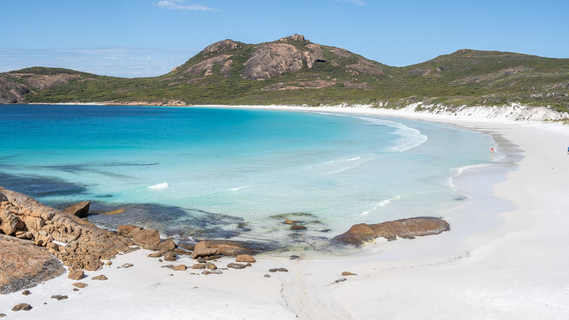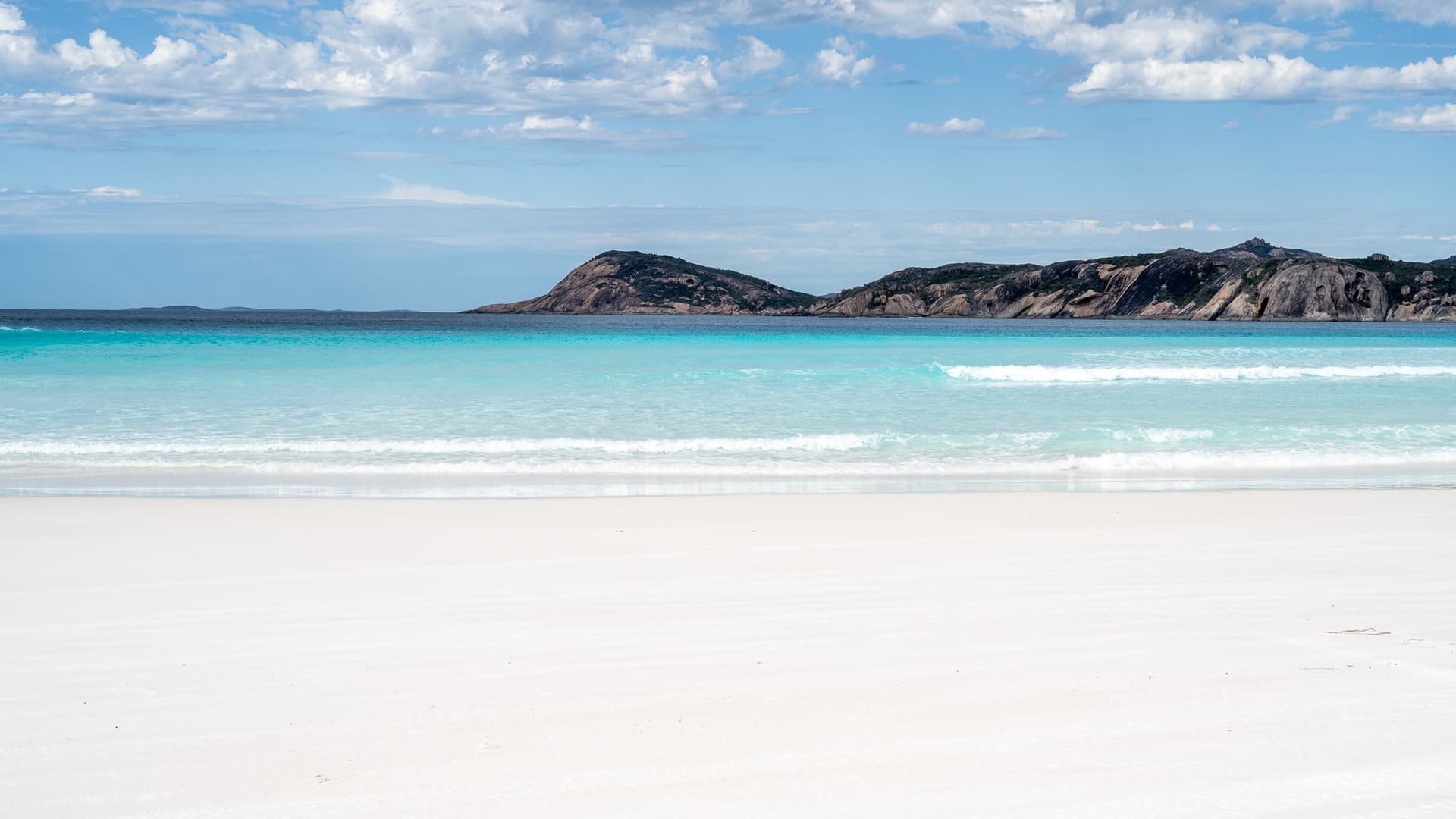 从佛罗里达Panhandle到挪威罗弗敦群岛,非热带地区的白沙看起来没有热带那种溢出屏幕的刺眼,就和它的质感一样温柔细腻,遇到加勒比风格的绵延山丘和马尔代夫风格的果冻海,便形成了Lucky Bay的独特景观。
