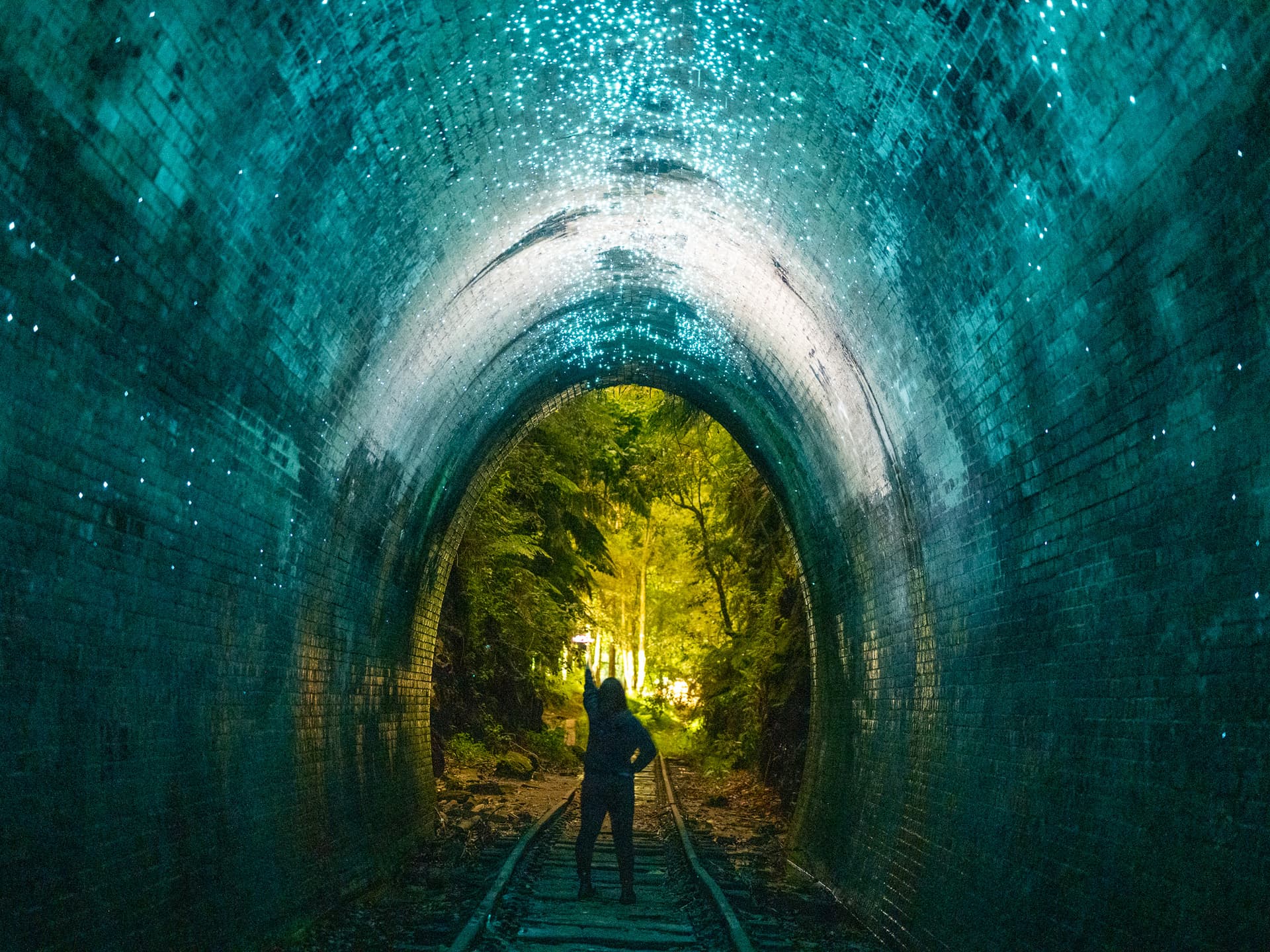 悉尼的气候非常舒适,虽然出太阳时比较热,但纯论温度并不算高,傍晚时更是凉爽。晚饭后我们来到了悉尼城南的Helensburgh——第一次看到这里的照片就被震撼到了,这是一个废弃的火车隧道,内部潮湿而温暖,是蕈蚊类幼虫喜欢的生境——如名所示,这类人畜无害的“蚊”主要吃蘑菇和小虫,并不会吸血。而在这里生活的蕈蚊是 Arachnocampa richardsae,它们的幼虫会在夜晚发出蓝色萤光吸引食物。本地人都管这些小虫叫“萤火虫”,但更合理的叫法应该是glowing worm,或者荧光虫。隧道入口位于林间十分隐蔽,废弃的铁道中间还有积水十分泥泞,但走到隧道内便一直卧槽不断,仿佛是通向宇宙的铁路,放眼望去都是灿烂明亮的蓝色星河。