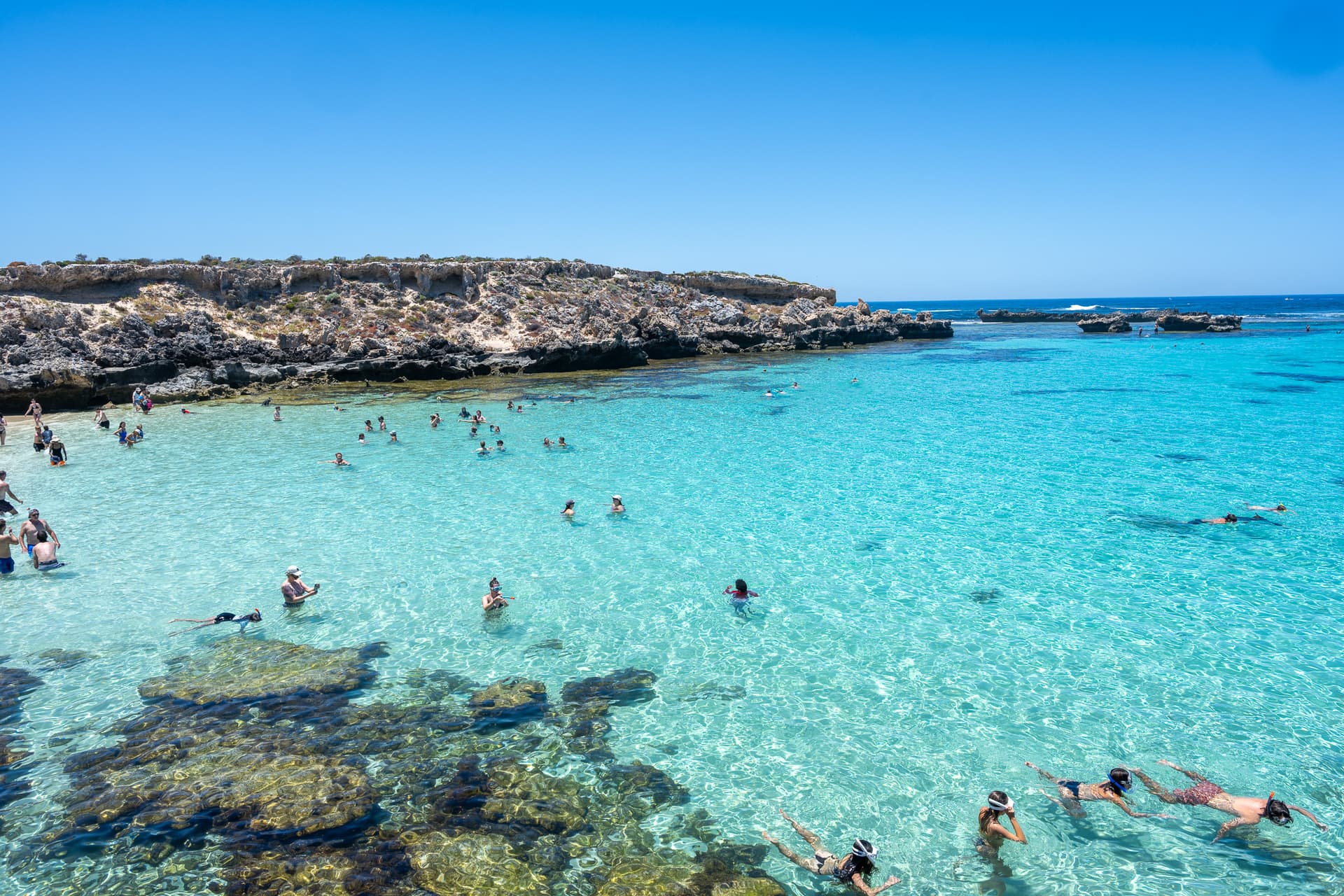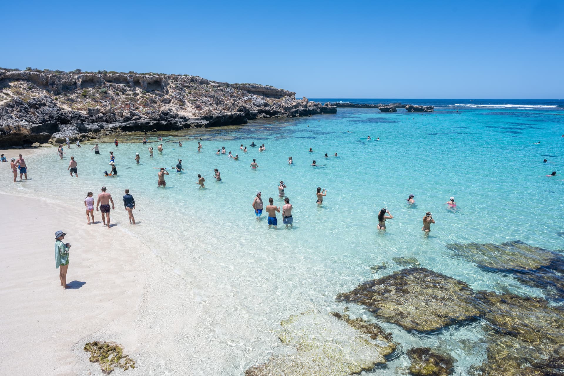 除了短尾矮袋鼠,Rottnest岛还有Perth周边最美的海滩,乘坐环岛的环保车可以很方便到达各个景点。上午时短尾矮袋鼠还没开始大面积活动,于是我们决定先去海滩消消暑。
