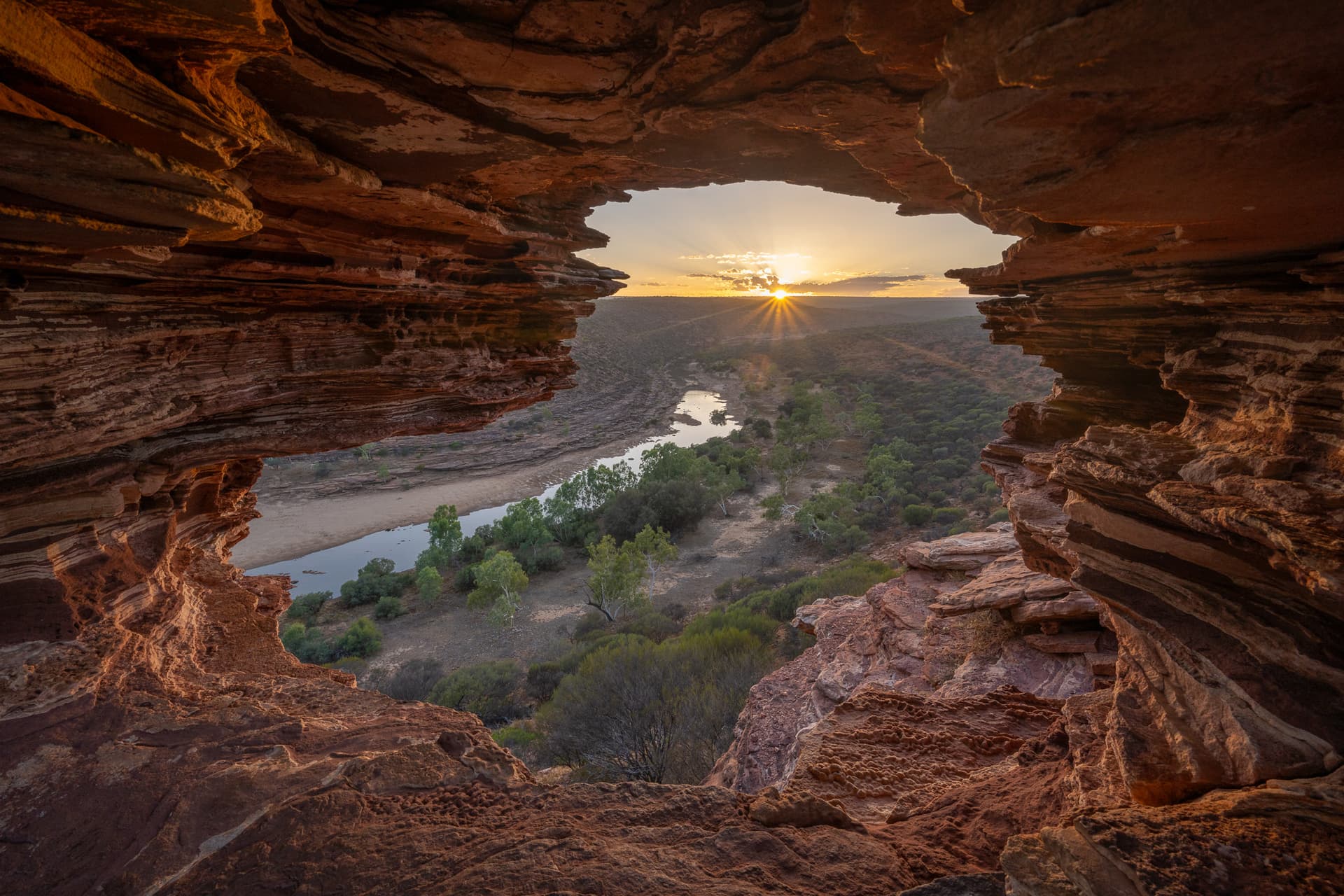 日落后我们继续两人换着开车往北赶路,睡上4小时后在西澳北部犹他风格的Nature’s Window迎接日出。我们在一望无际的路上驰骋,驶过一座座沙丘一条条干涸的河床,直到地平线上最后一条光幕落下。