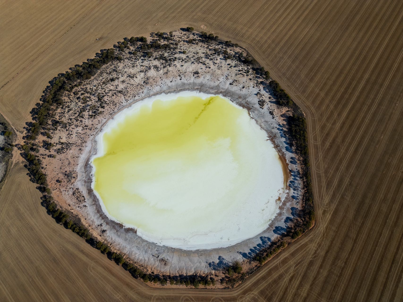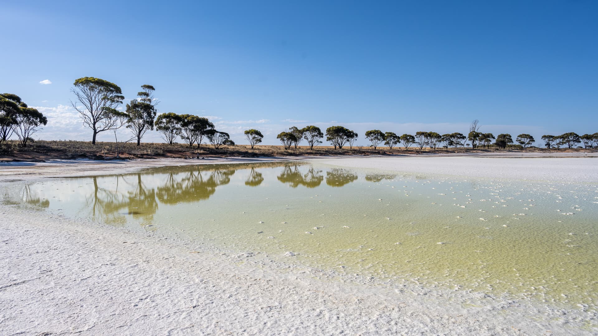 即将抵达目的地,随着深入内陆又荒凉了起来,这片翡翠色盐湖也是意料之外的路边风景。澳大利亚虽然缺乏大开大合的地貌,但从不缺乏缤纷的色彩。