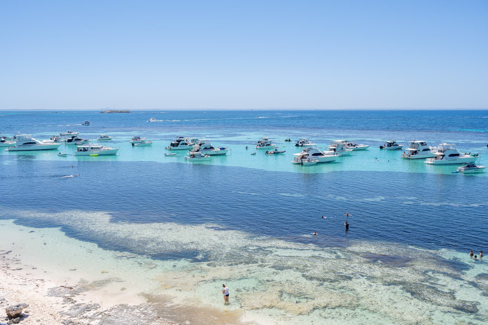 由于地中海气候属性加上寒流影响,虽然外面高温40度,但Rottnest Island的水温仍旧很凉爽只有20度出头,十分清凉以至于队友都嫌太冷没有下去……这里的白沙滩玻璃海质量相当不错(虽然比不过两天后的Lucky Bay),但和热带的玻璃海又是完全不同的风格。
