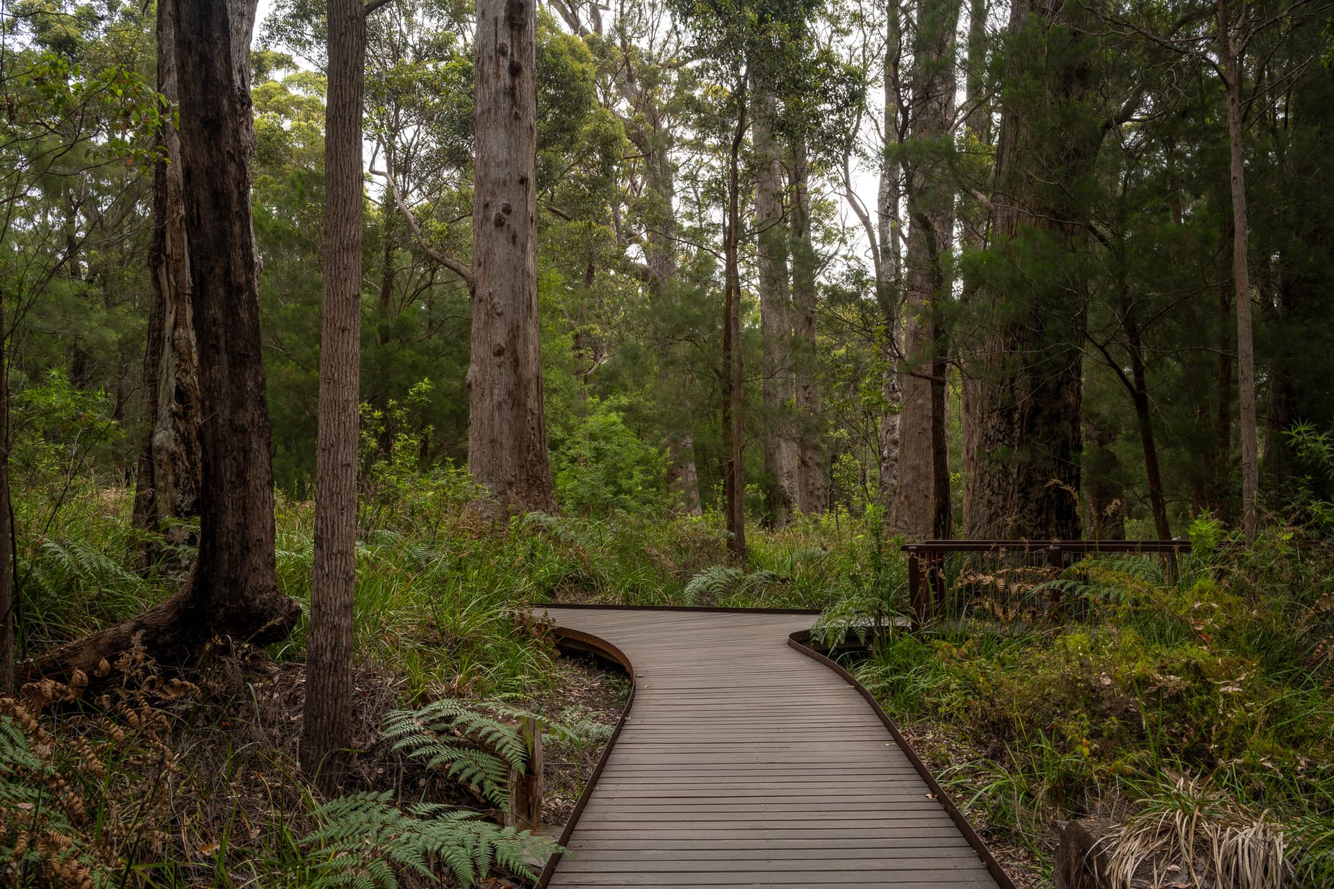 随着一路西行,植被又在肉眼可见地越发茂密,直到距离目的地Valley of the Giants不到一小时,看了三天荒漠的我们突然进入一片雨林——在西澳的西南角,充沛的降水带来了和墨尔本类似的海洋性气候,是巨大的红桉的家园。看吐了荒漠景观,这个看似平平无奇的地方旅游体验却相当不错。Valley of the Giants仿佛是南半球版本的Redwood National Park,红桉虽然高度和粗壮程度比不上美国的Sequoia和Redwood,但空中栈道观察林间垂直生态的体验非常好。