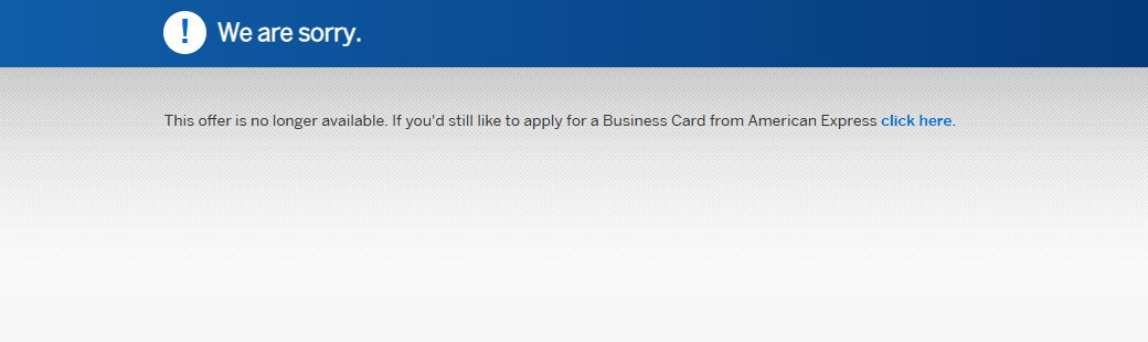 最近想申请AMEX的business card,之前从来没有申请过。尝试申请AMEX BUSINESS GOLD 和PLATINUM都是反馈This offer is no longer available. 不过是使用refer link,还是一些NLL的链接,都是同样的反馈,即使登录账户,也是一样。请问这是被AMEX拉黑了吗?有什么办法破解吗?谢谢