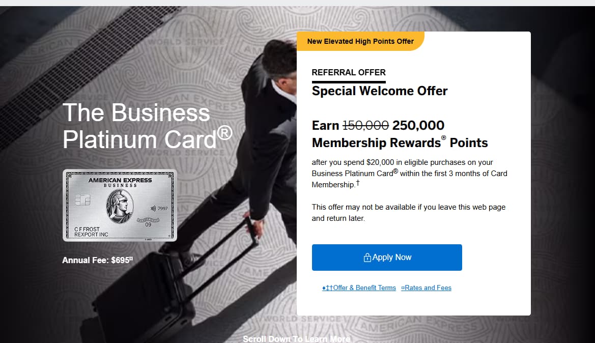 论坛里的BUSINESS PLATINUM的 refer link,我每一个都打开,都是显示有250K sign up bonus,但是一点击apply now. 立马就是we are sorry. ![]()