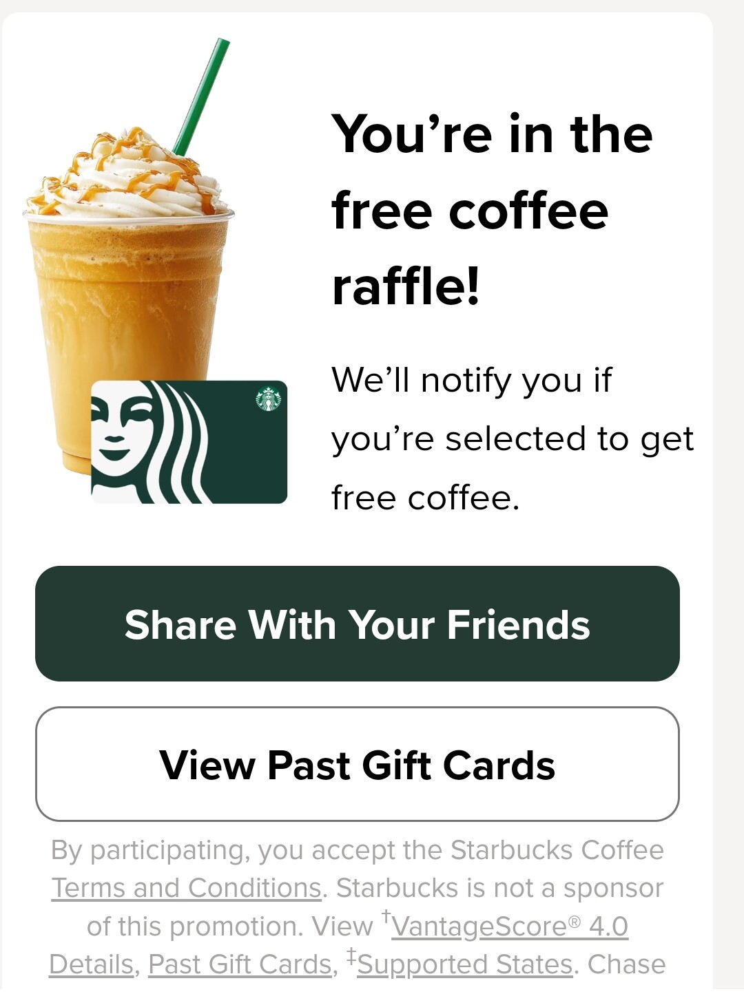 对 chase不可以. 所以用chase的不配领咖啡