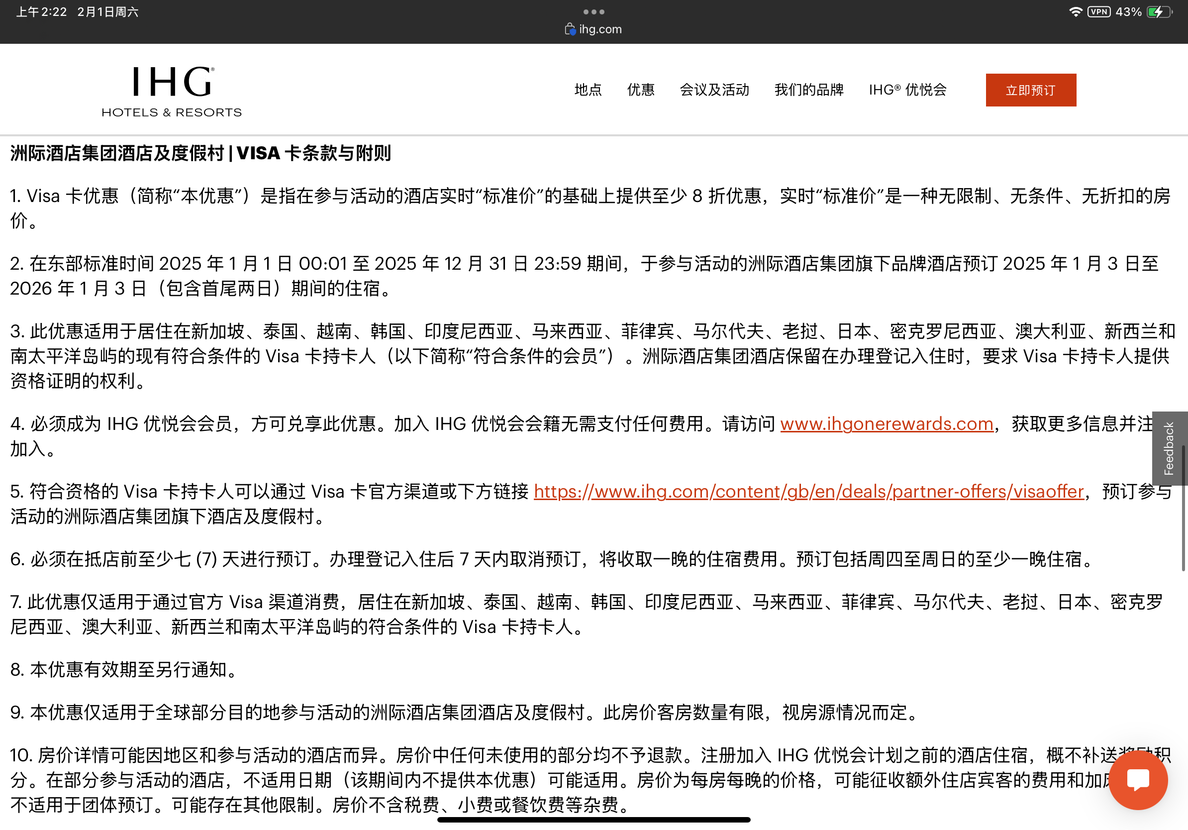 好吧我刚刚才注意到大中华地区的IHG会员是无法使用的。。。