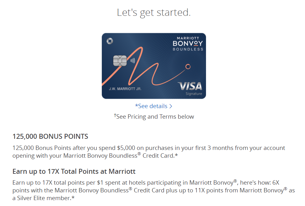目前公开链接和100k + $150的都只需要刷3000刀,125k的要多刷2000刀,奖励只是将150的statement credit换成25k的万豪点数,刷卡刷的少的未必就比前两个值,自行权衡,刷卡不多的可以考虑下面的Marriott Bonvoy Bold只需要刷2000,奖励也不错