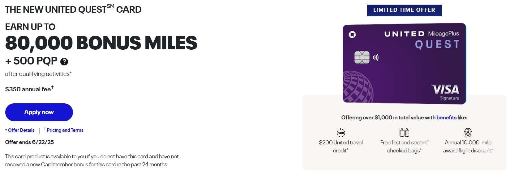 United Quest 100k + 3k PQP 黑车上线,三个月内加副卡还有额外的10k,需要空乘bonus额外5k的自己改链接