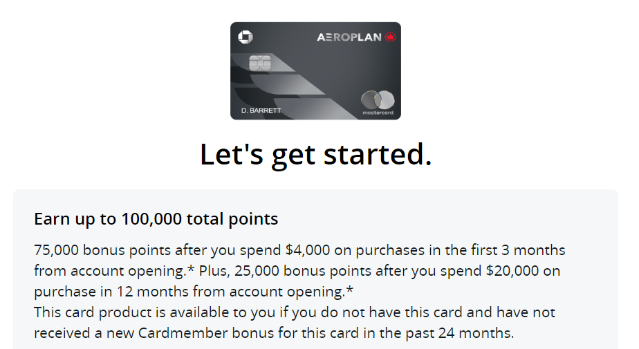 Aeroplan出现了一个新的offer:三个月刷4000刀给85k 申请链接在此