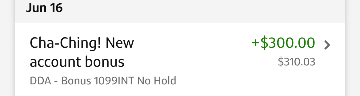 今天看到它家给了2 DD/300 checking bonus, 顺手也上车了。