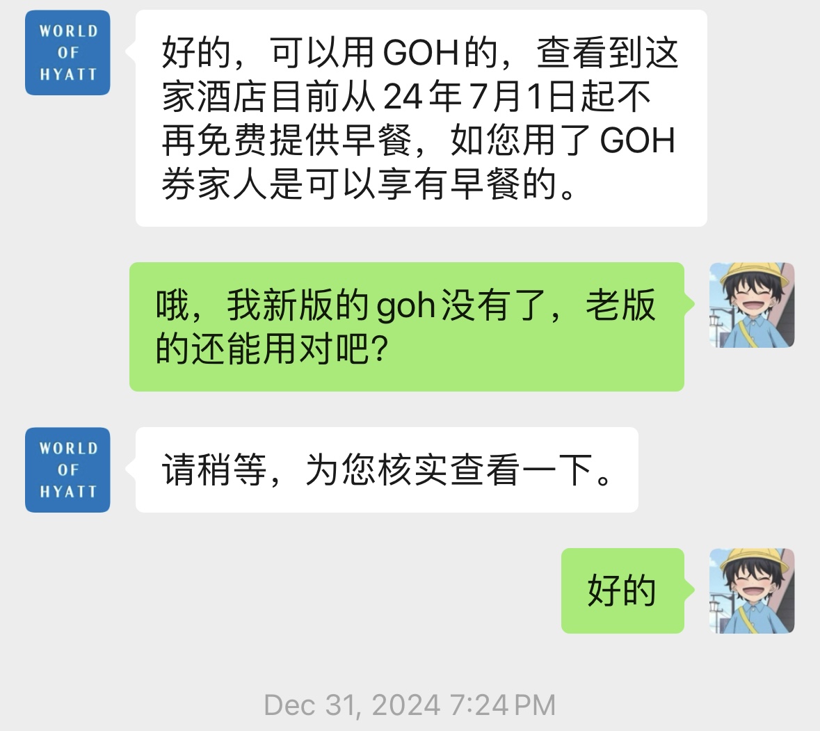 去年底我问微信客服帮我定的,我说要不要加个legacy goh,我知道hp可能用不上,就问问。结果他查了下就说可以用,goh有早饭,这家hp没有免费的早饭。