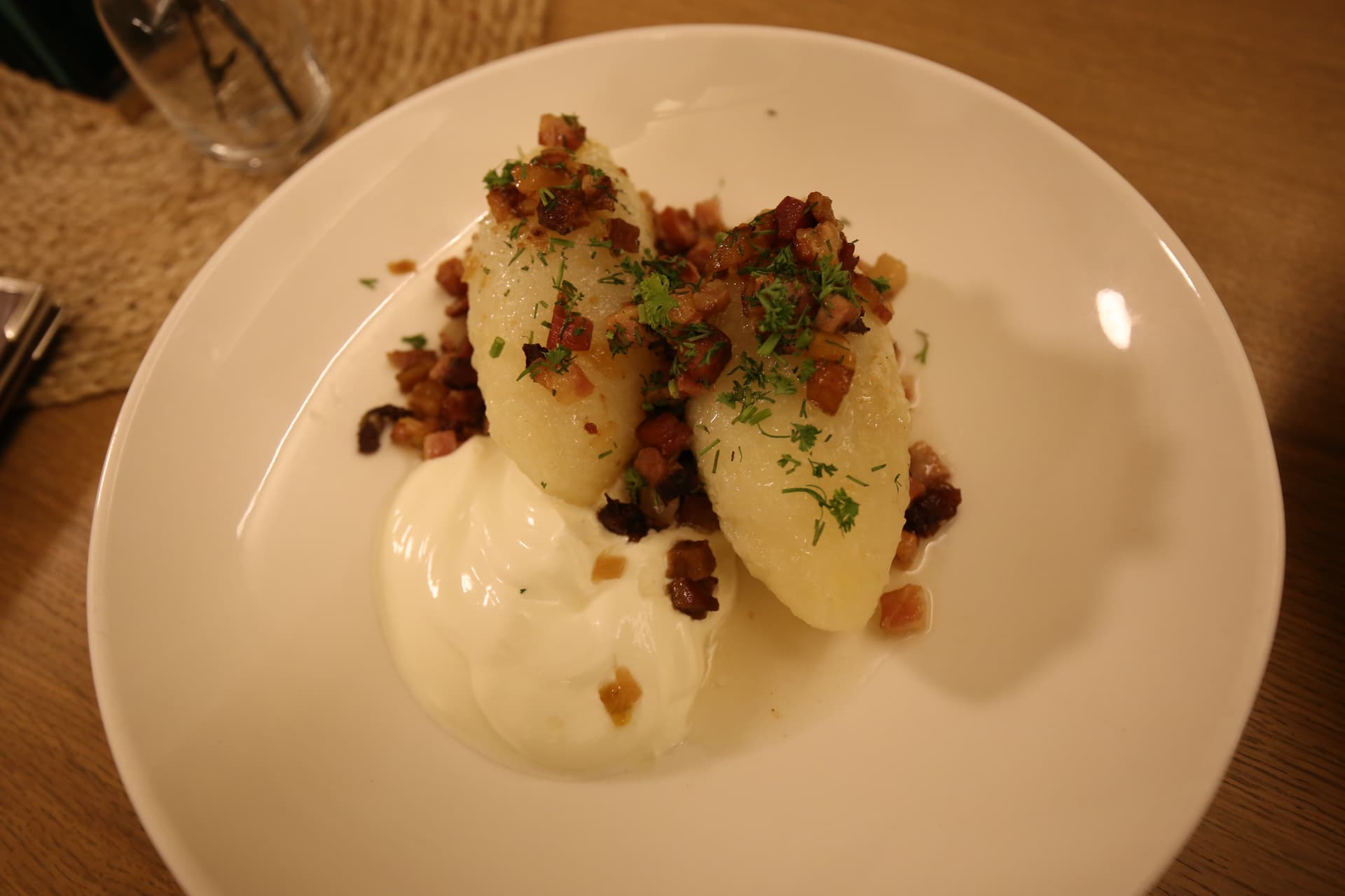 顺便点评一下今天吃晚饭,我们去的是火车站旁的 Bazilijonai ,谷歌网评 4.8/5,几乎是全市最佳餐厅,传统的立陶宛料理。这里果然没有让我们失望,上的三碟菜都非常好吃。