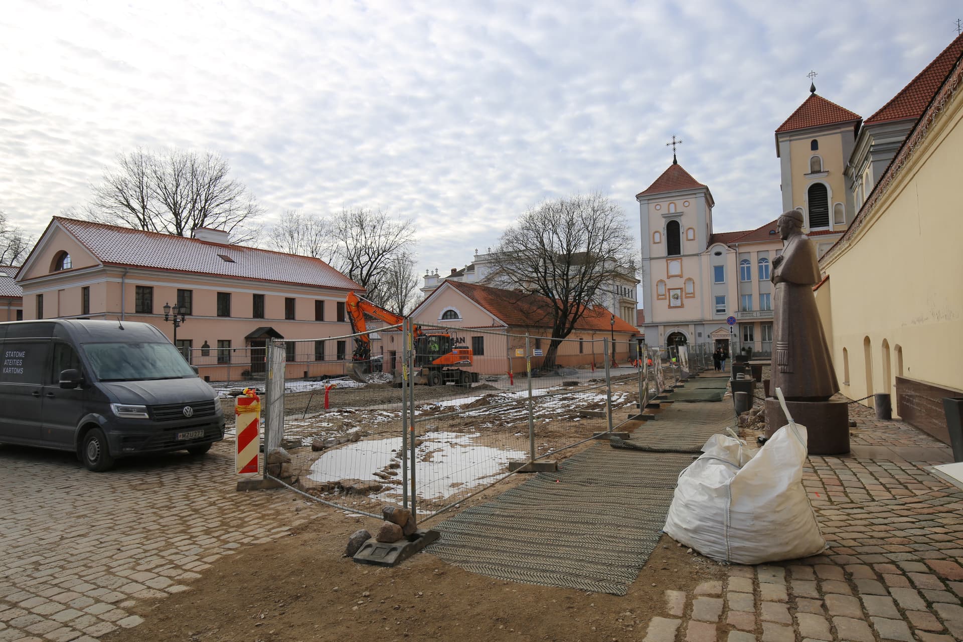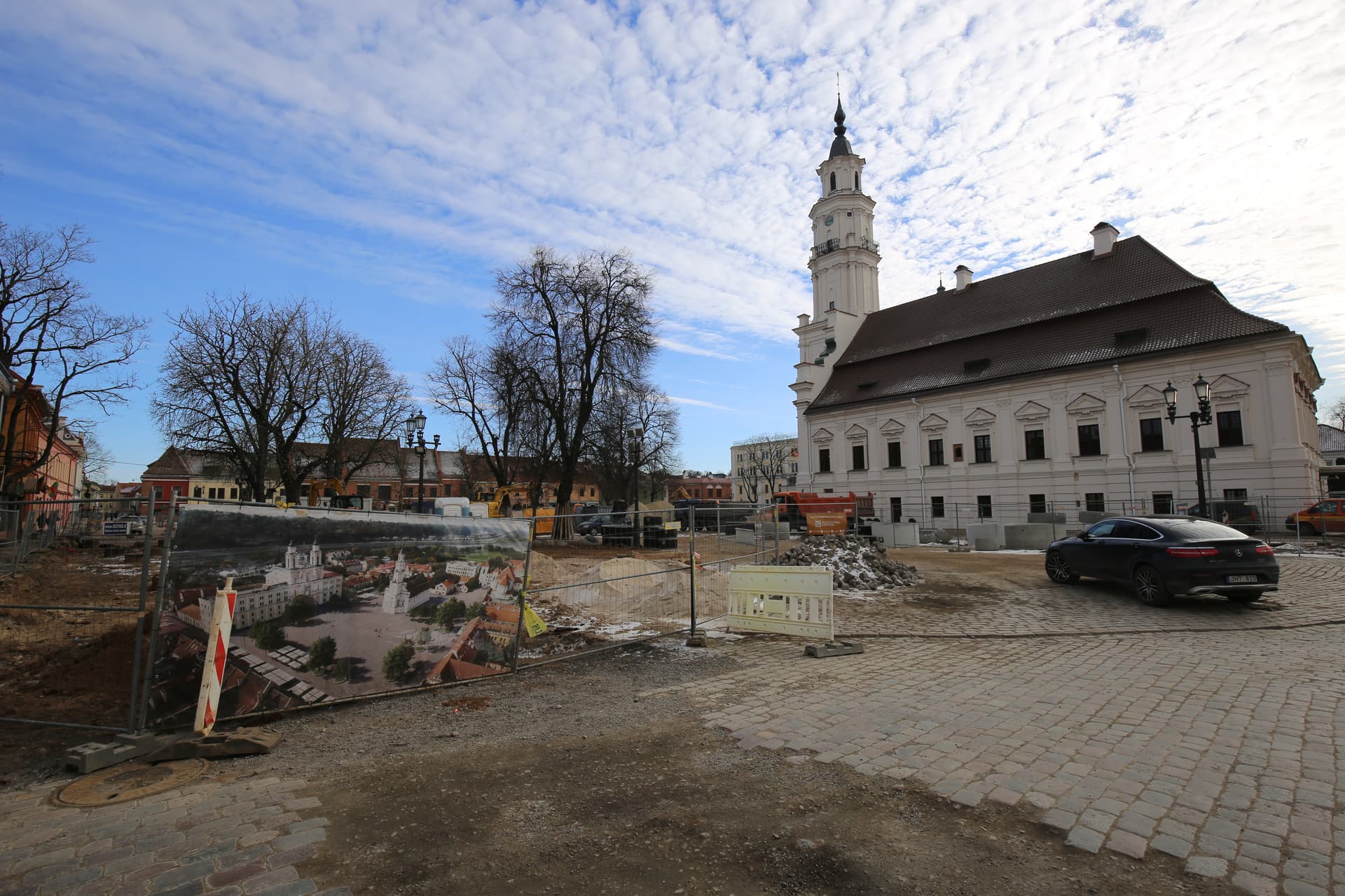 今天的考纳斯老城广场正在翻修,大型施工现场