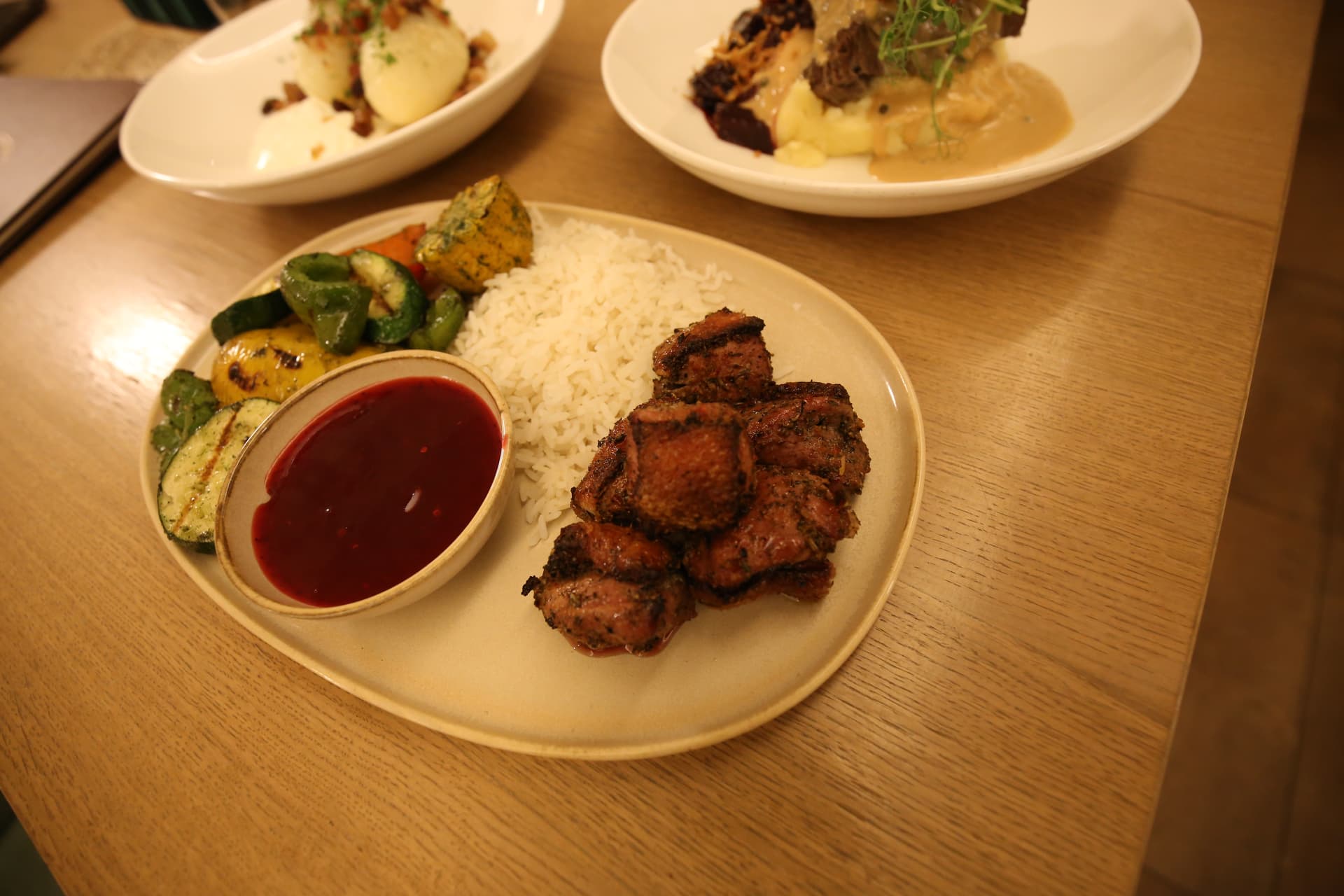 鸭胸烤串 (250g) + 饭 + 烤菜 18欧