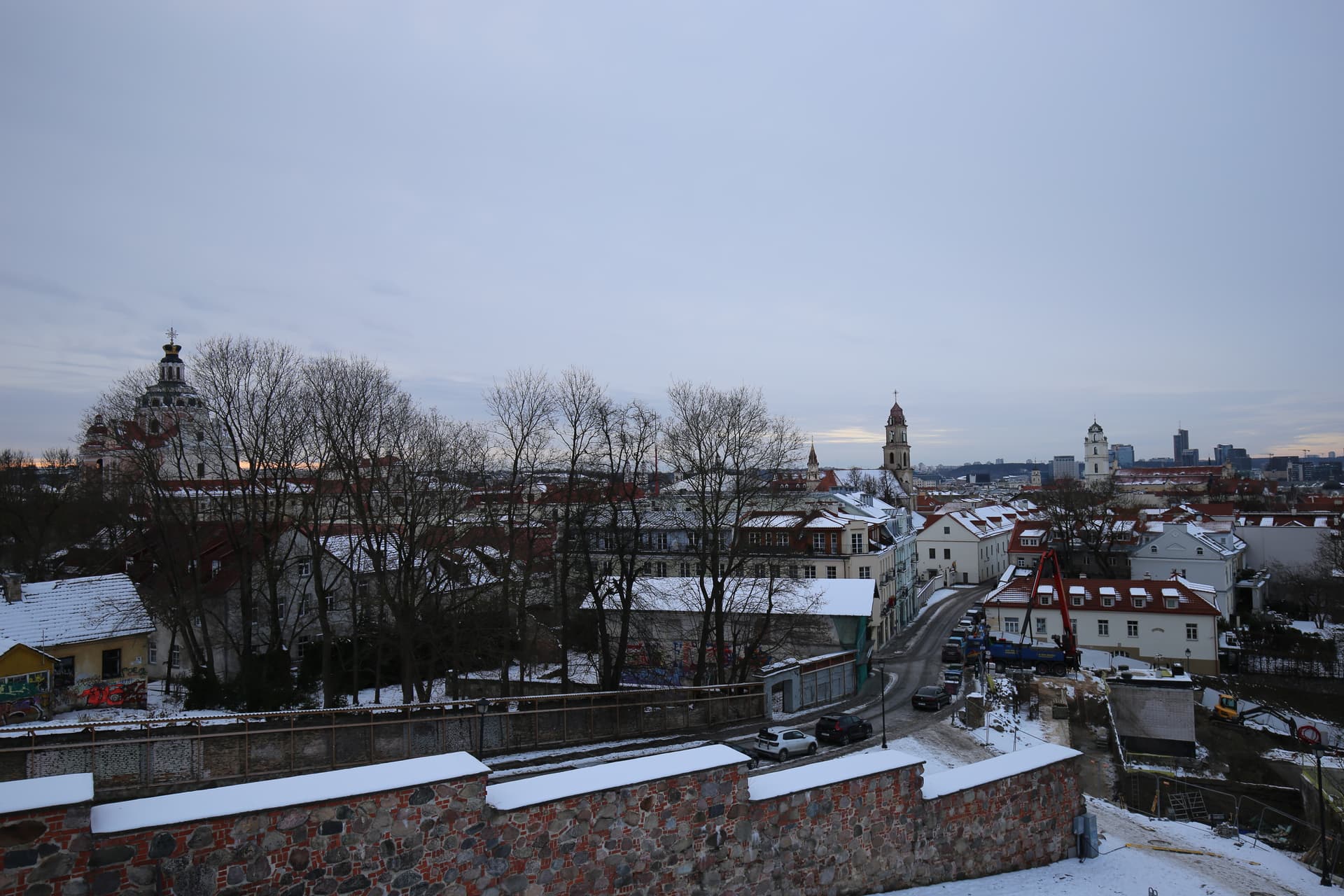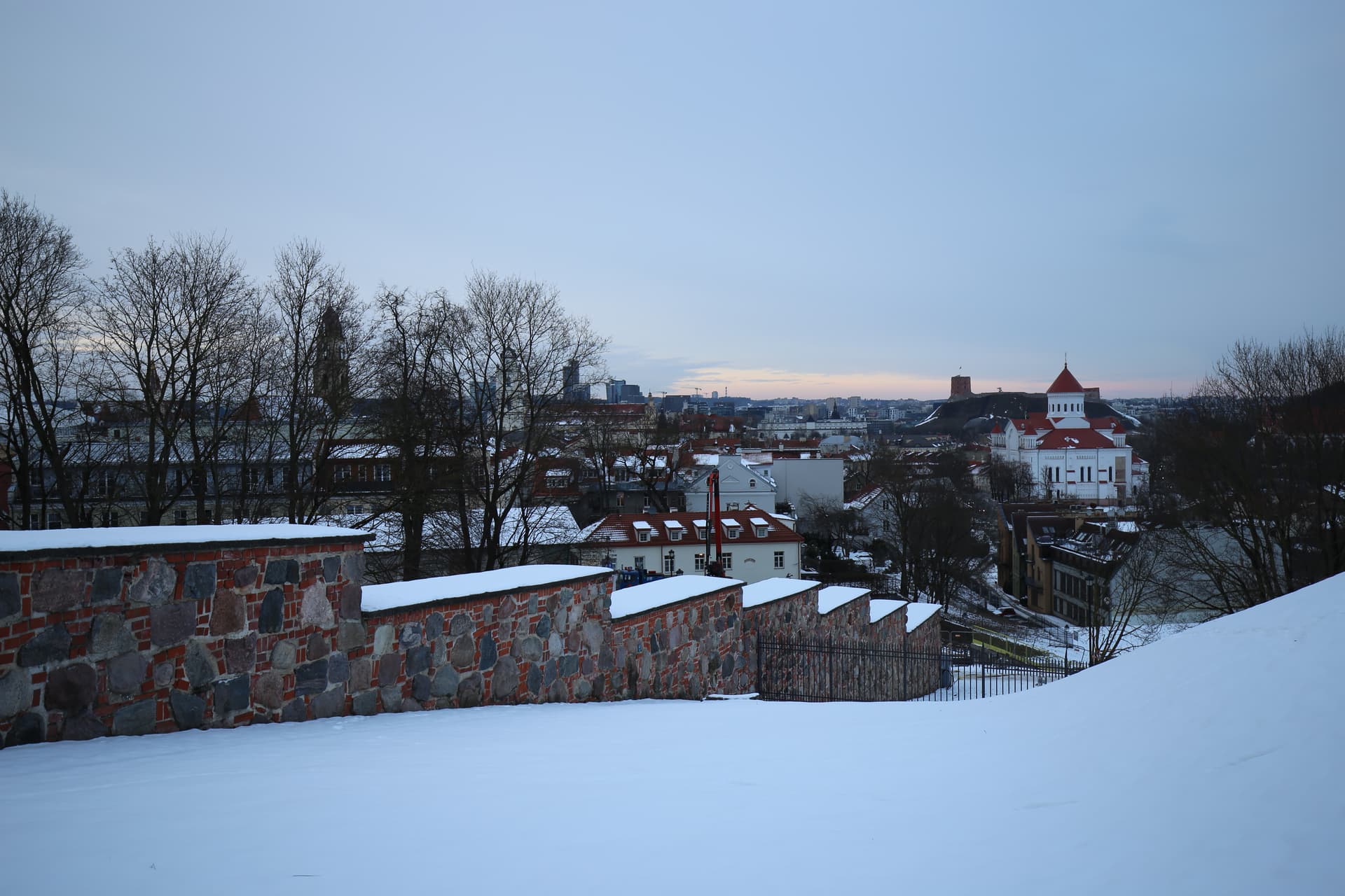 从地堡出来能看到最迷人的景色:白雪覆盖下眺望维尔纽斯老城的日落