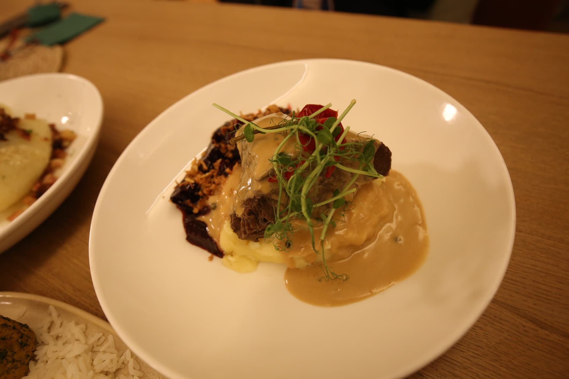 立陶宛国菜是“糯米口感”的磨土豆夹碎肉,这个土豆的口感很独特但很好吃。可惜冬季没有 @JayChien 提到的紫色汤