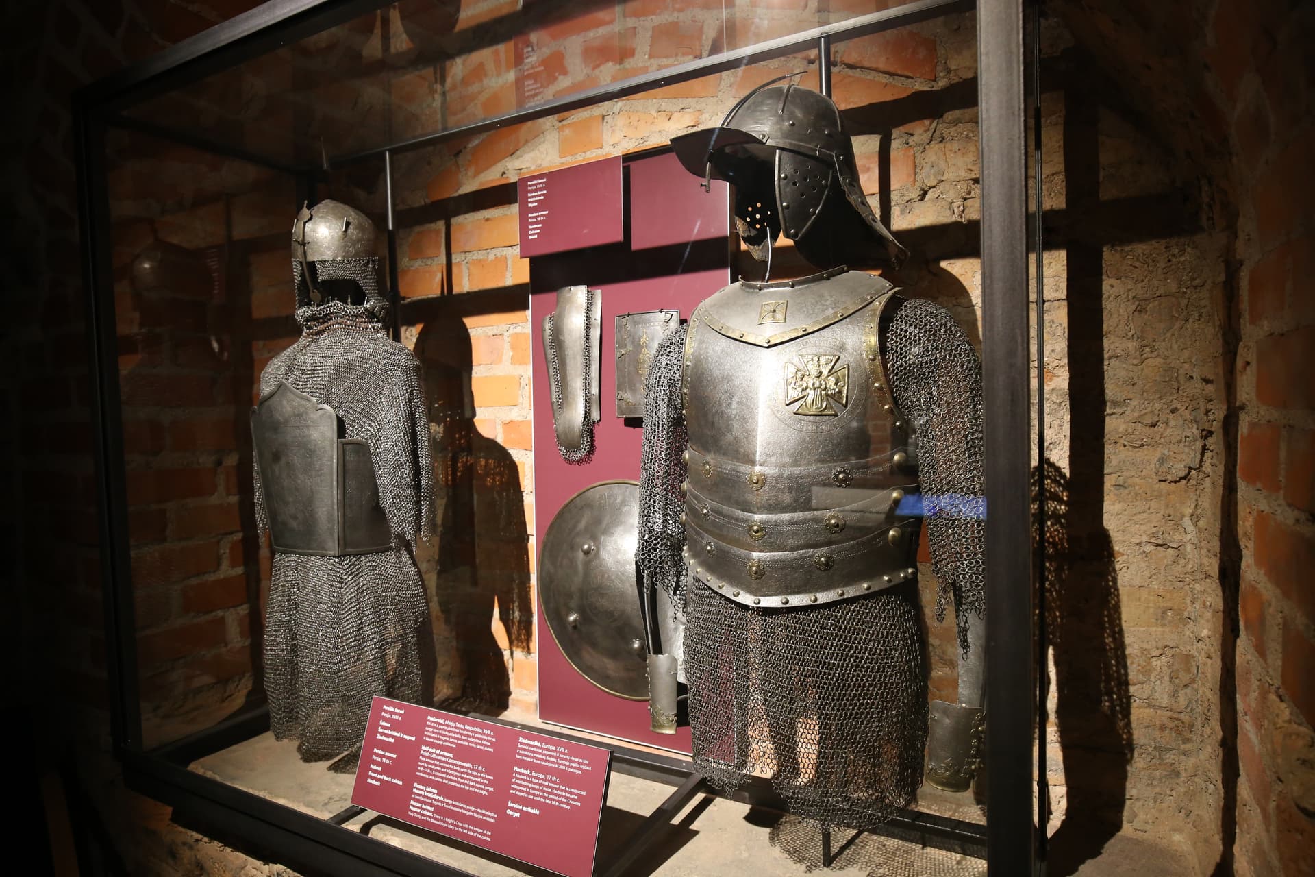 这里可以试穿中世纪头盔、铠甲和佩剑。第一次穿戴头盔,没想到这么重