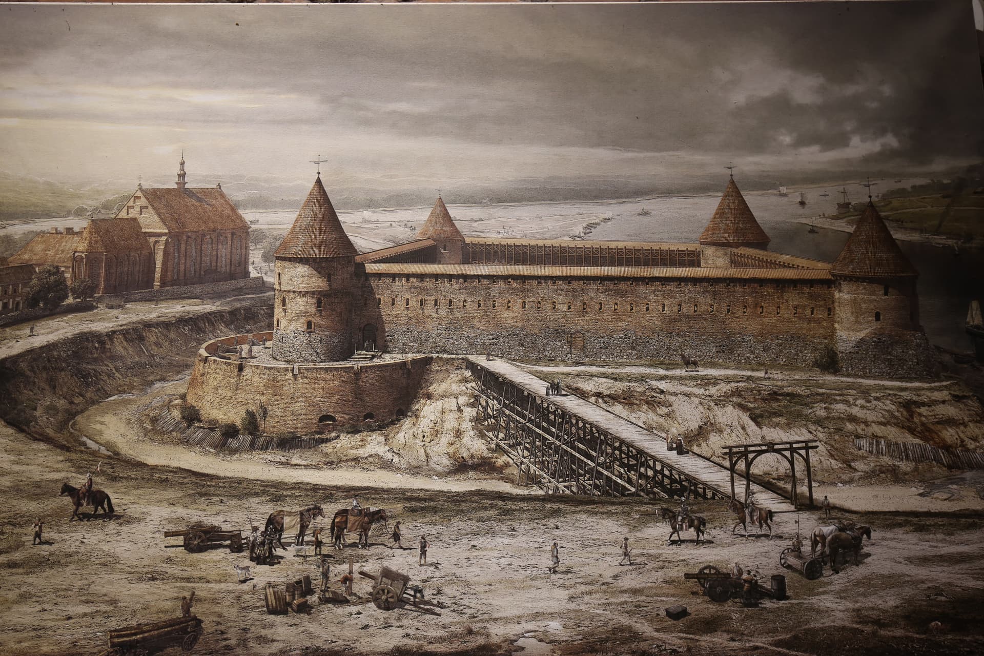 考纳斯城堡其实是我来该城打卡的主要目的,毕竟 城堡数量不多,这是其中一个。城堡坐标两河交界的战略要处,历经多次战争后只剩一个塔楼,不过还好有示意图展示当年城堡的原貌。