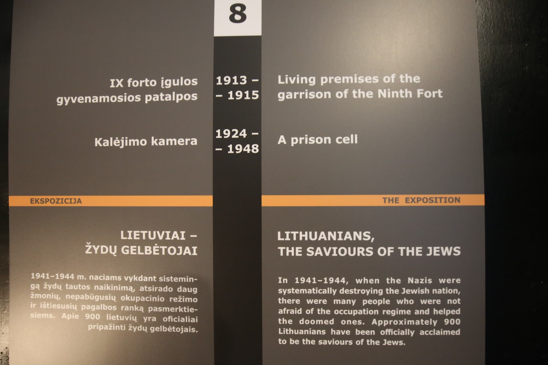 这是考纳斯市郊的军事防线堡垒保留最好、故事最多的一座。堡垒1910年代由沙俄政府修建,刚建好第一期就爆发了一战,沙俄驻军本来还想建第二道防线,但是还未完成,考纳斯就被德军占领。一战结束后,1924年被独立立陶宛政府改造成监狱。1940年,立陶宛被苏联吞并,斯大林政府把它当作古拉格劳改营。1941年,纳粹入侵苏联并占领立陶宛,德军又把它改造成犹太人集中营,把从法国和苏联占领区的大批犹太人运送到这里并系统性杀害。二战后,苏联政府1958年把其该成纳粹受害者博物馆。这里基本上是立陶宛境内的奥茨维辛。