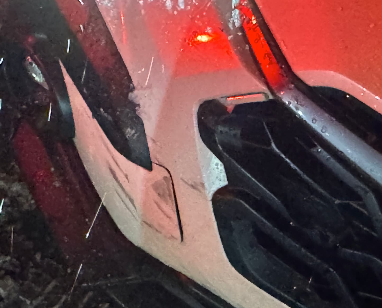 前边黑车的右侧凹陷了进去,我的是白车,也掉了一块