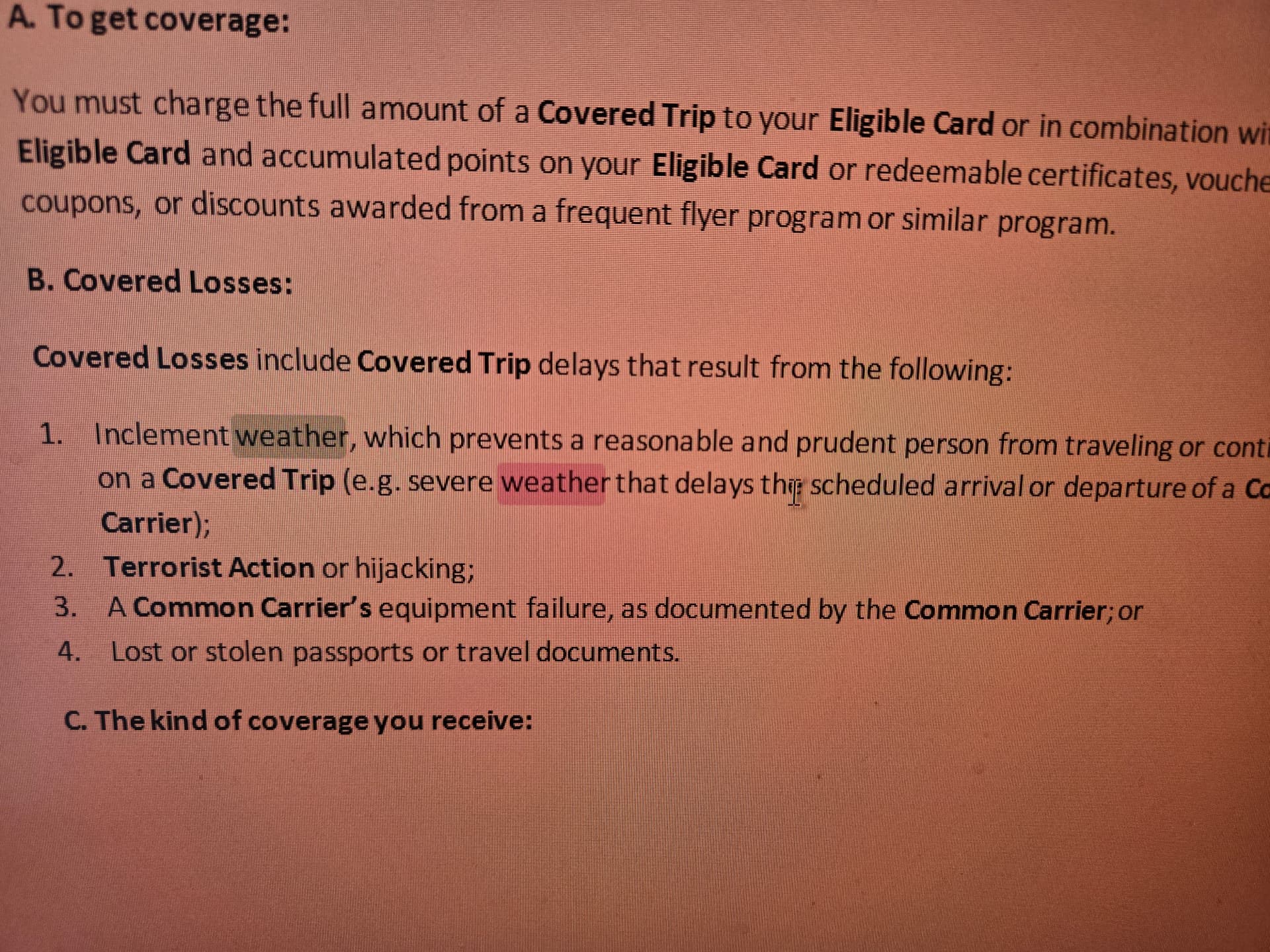 According to Chase Sapphire Reserve’s guide to benefits, only trip delays caused by “equipment failure, inclement weather, strike [or] hijacking/skyjacking” are eligible for trip delay reimbursemen