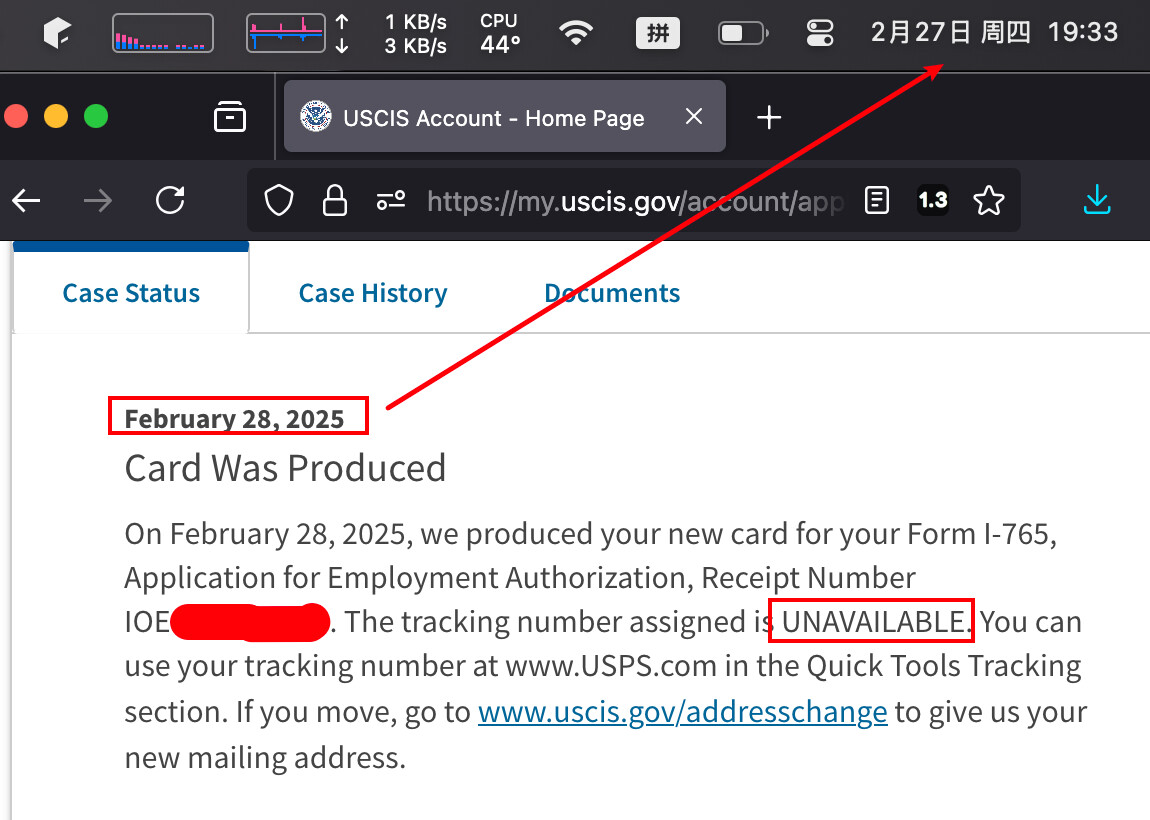 那个是红的不是绿的,I-765是EAD rip