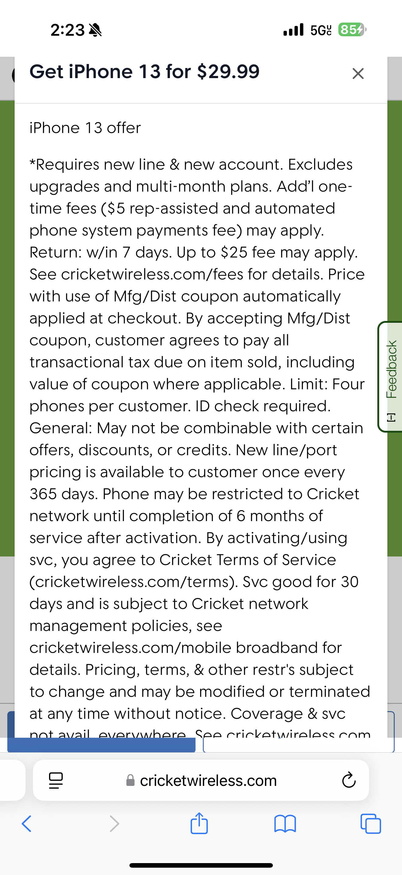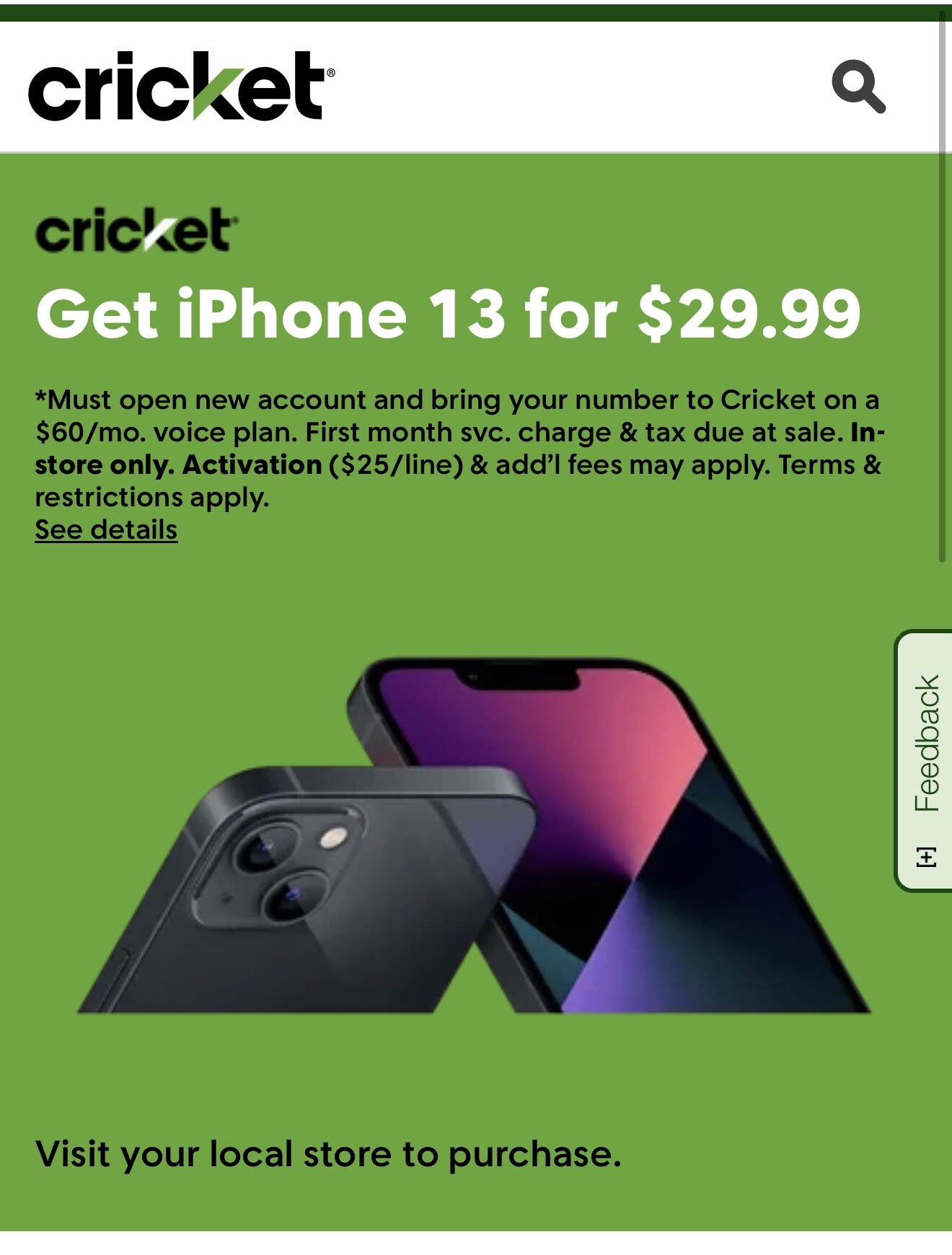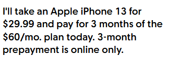 cricket现有活动线下29+60+25+税撸ip13,我去的线下店不多收钱,需要port in,可用visible metro tmo