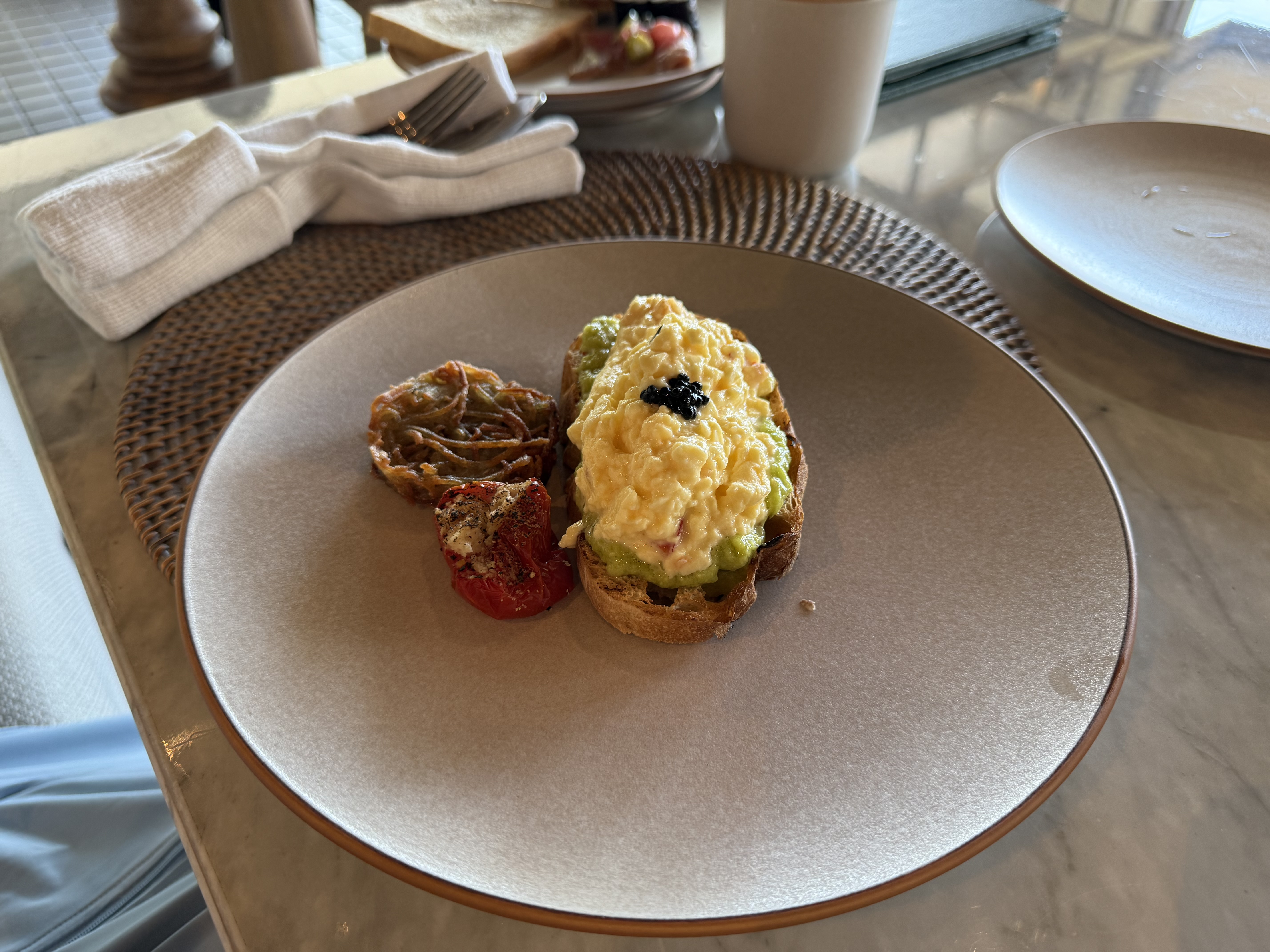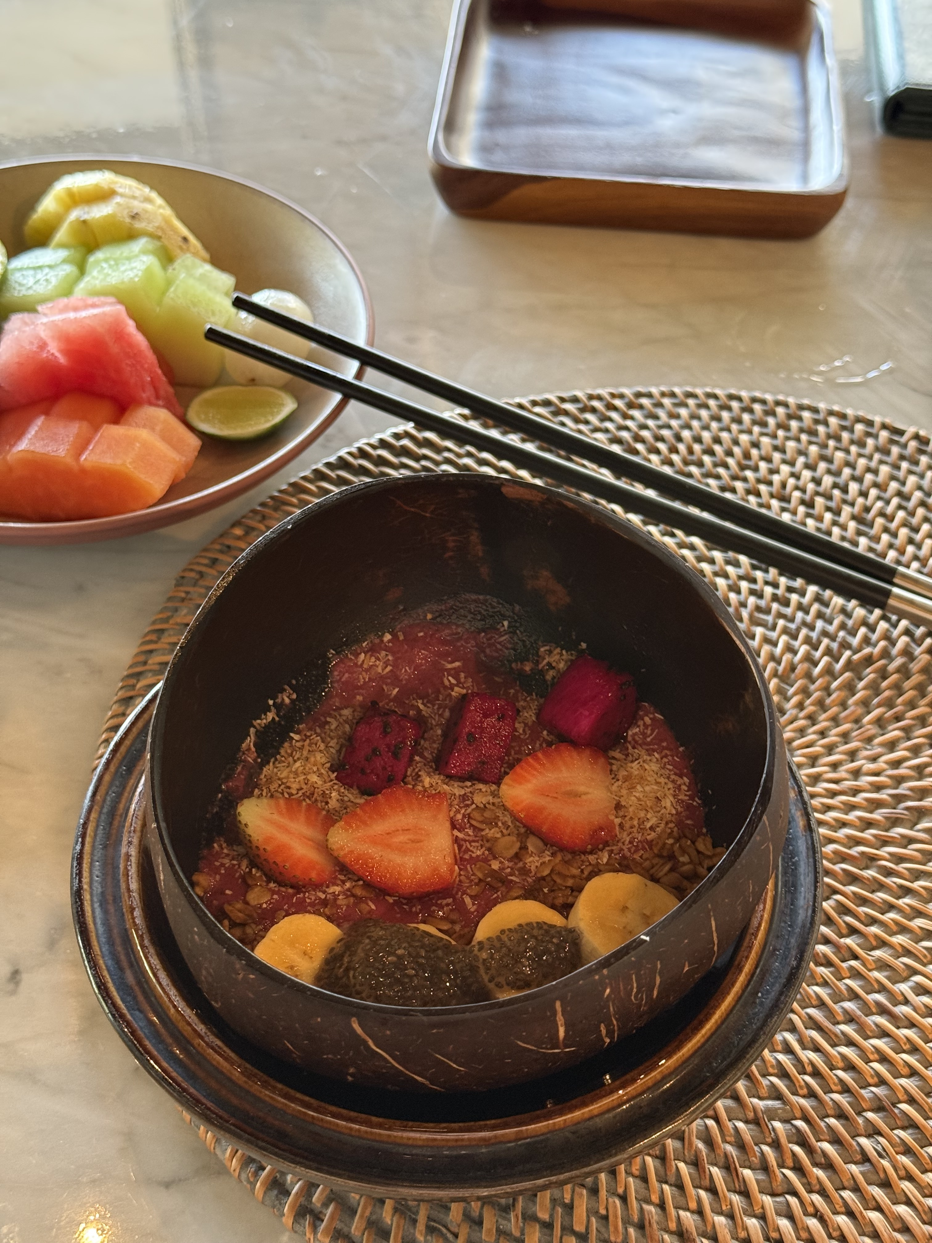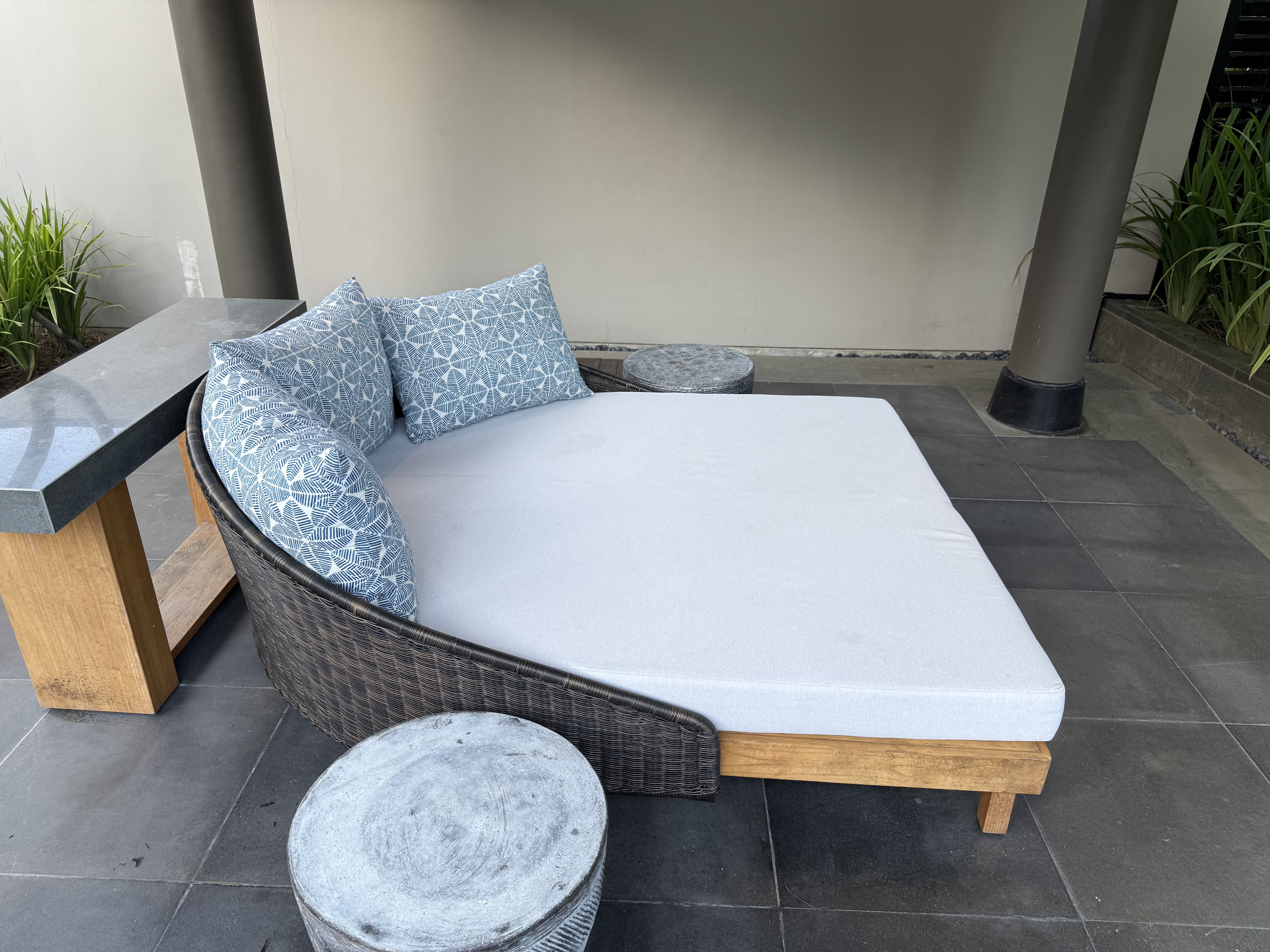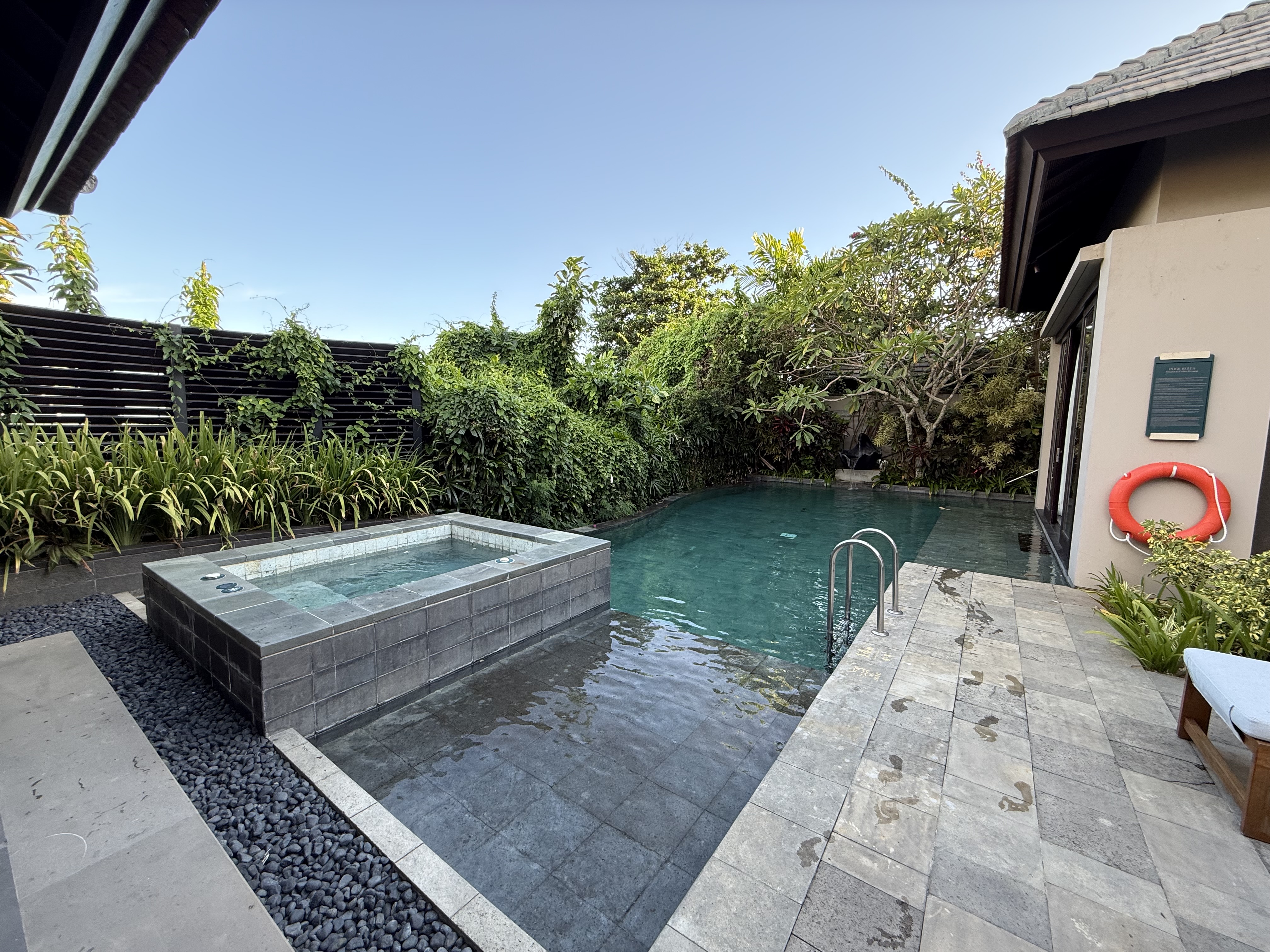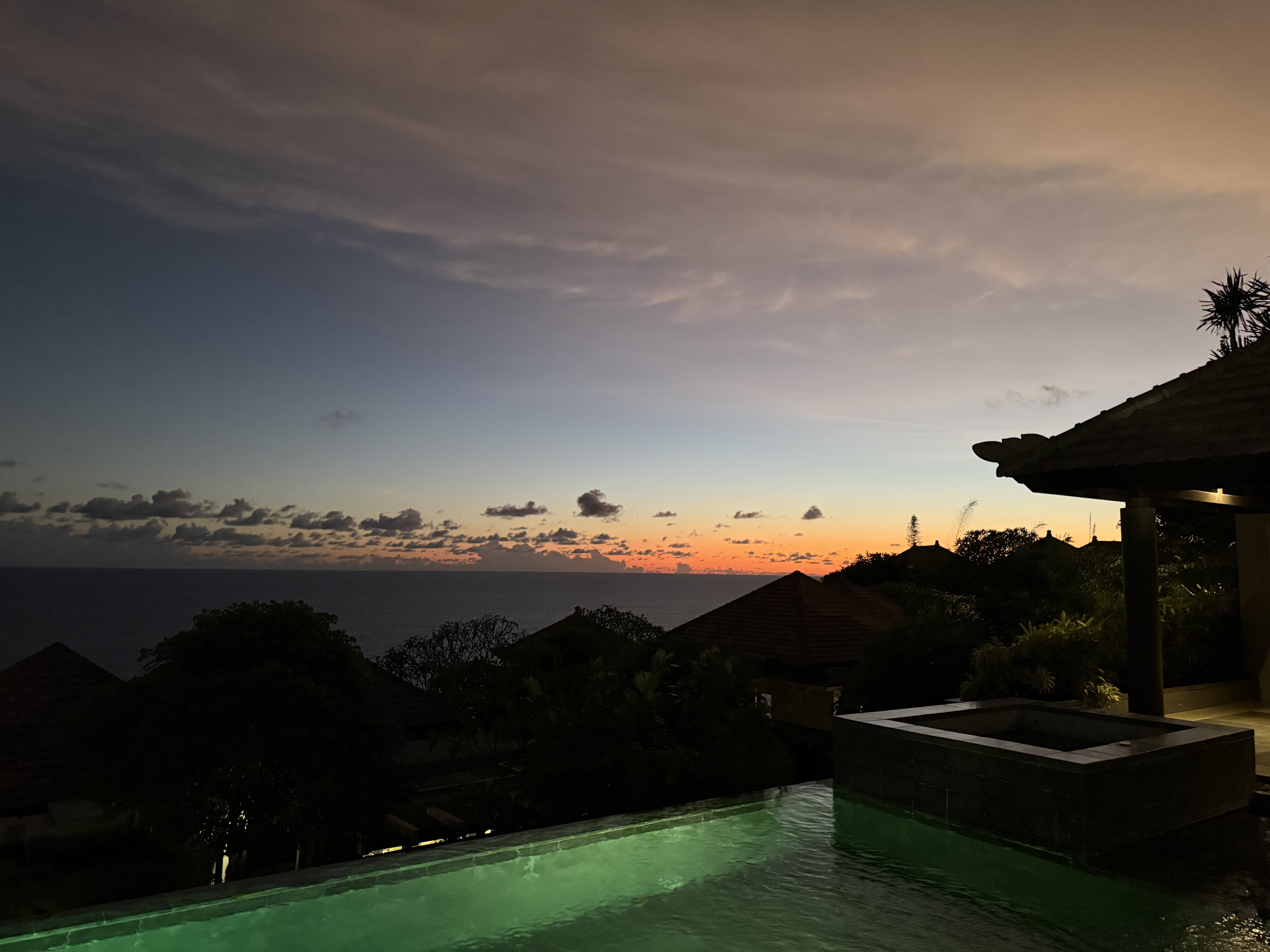房间用积分定的两晚。落地之后打车刚ci,因为lz想从garden view升级到ocean view, 但小哥说升一级的partial view没有了,正海景也sold out了,只有panoramic ocean view了,本来offer的价格是5.8M,谈到了5.5M IDR(早知道多砍点了 也就便宜了100人民币左右),然后小哥带我去看了看房间。最后一间全景房了,在“二层”(高处),海景会被底下的房顶挡着一些。lz觉得可以接受,就还是要了。毕竟 @Srandy 强烈推荐升级到海景【酒店简评】Umana Bali, LXR Hotels & Resorts