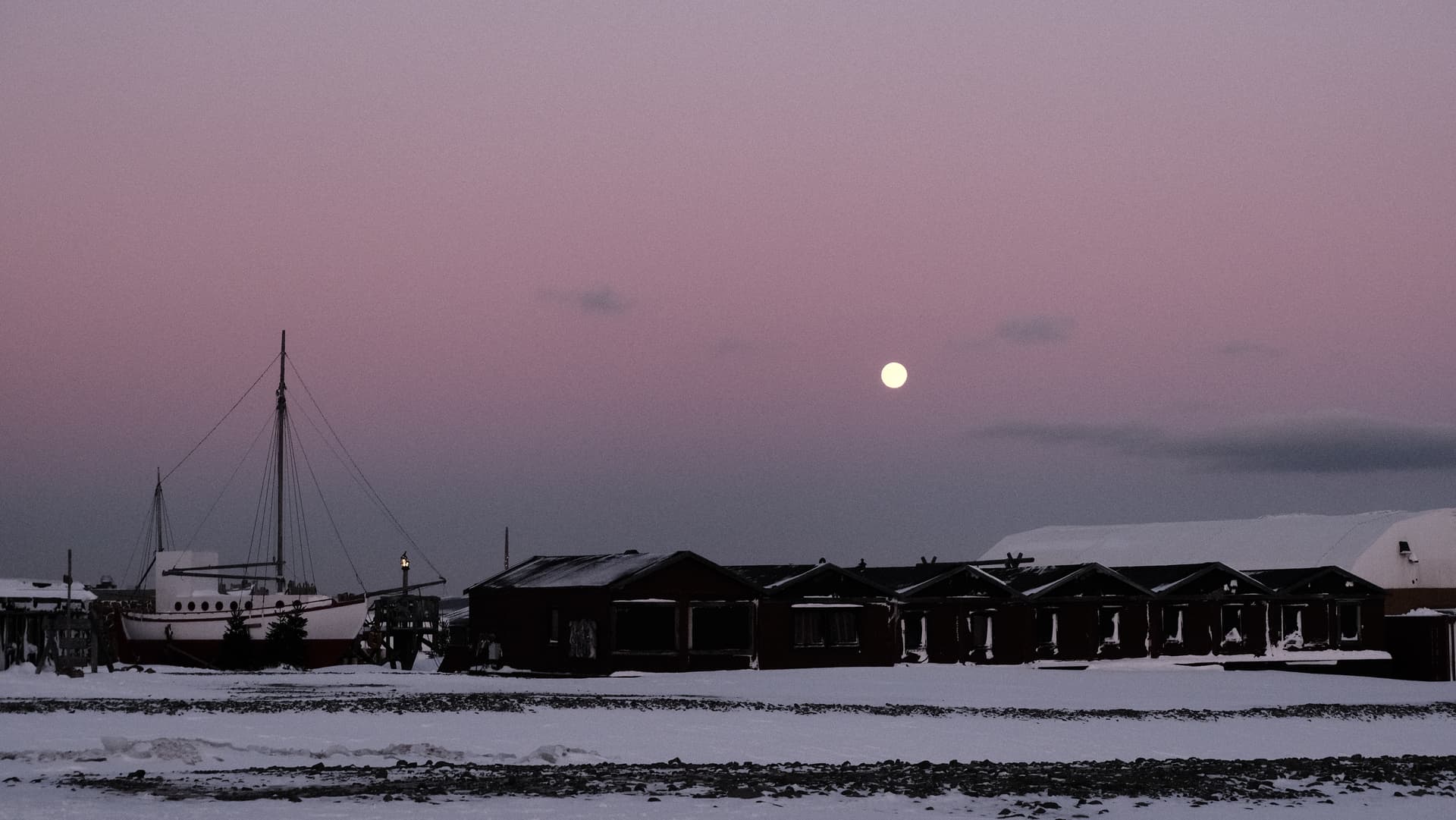在斯瓦尔巴,月亮已经在天空陪伴了这座小城十余个昼夜,这是极夜里为数不多的光亮。即使是清晨五点,高悬在天空的圆月依然清晰可见,甚至能看到月球表面的环形山。而随着极夜的结束,月亮则会消失在地平线下,等待半个月后的重逢。
