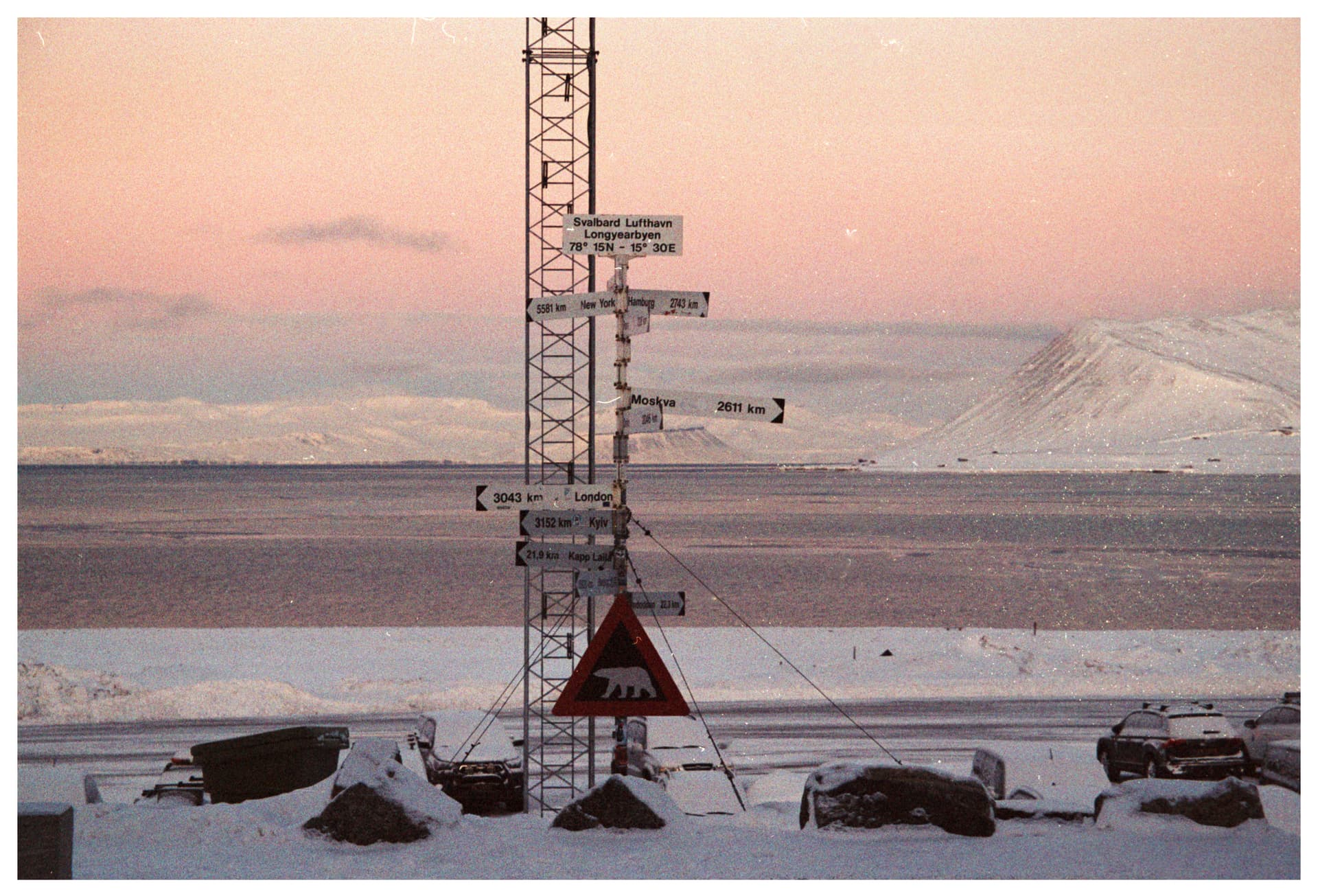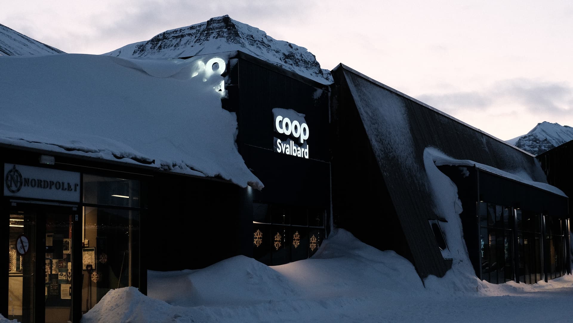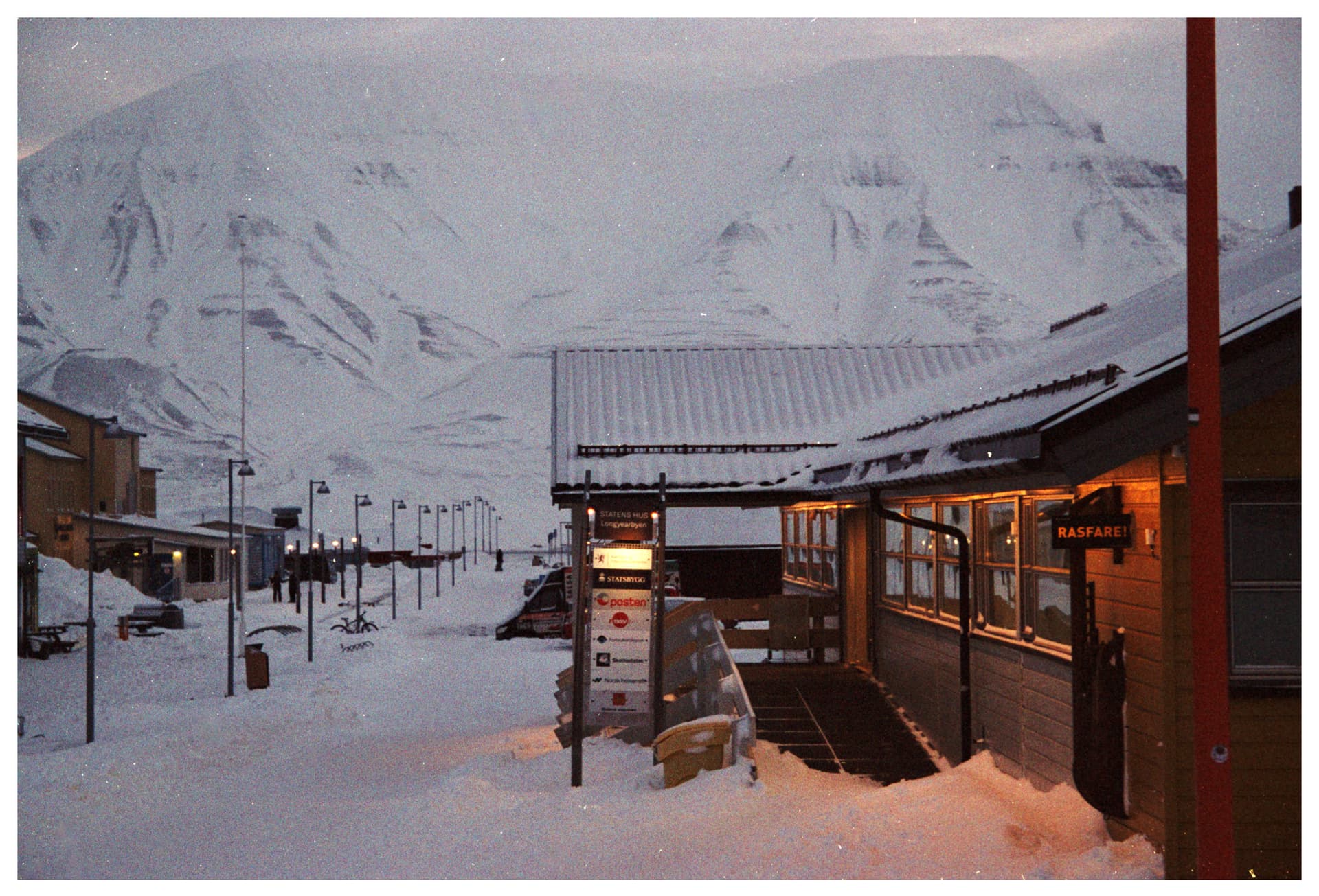 这里也有世界上最北的超市。落地在朗伊尔城机场给相机装胶卷的时候,发现电池没电了。本来已经几乎不抱任何希望 —— 因为EOS300需要的CR2电池相对少见,几乎不太可能在超市直接买到。没想到朗伊尔城的COOP居然有,而且其他的罕见电池型号(包括但不限于LR44,CR123也都有… 很惊喜)