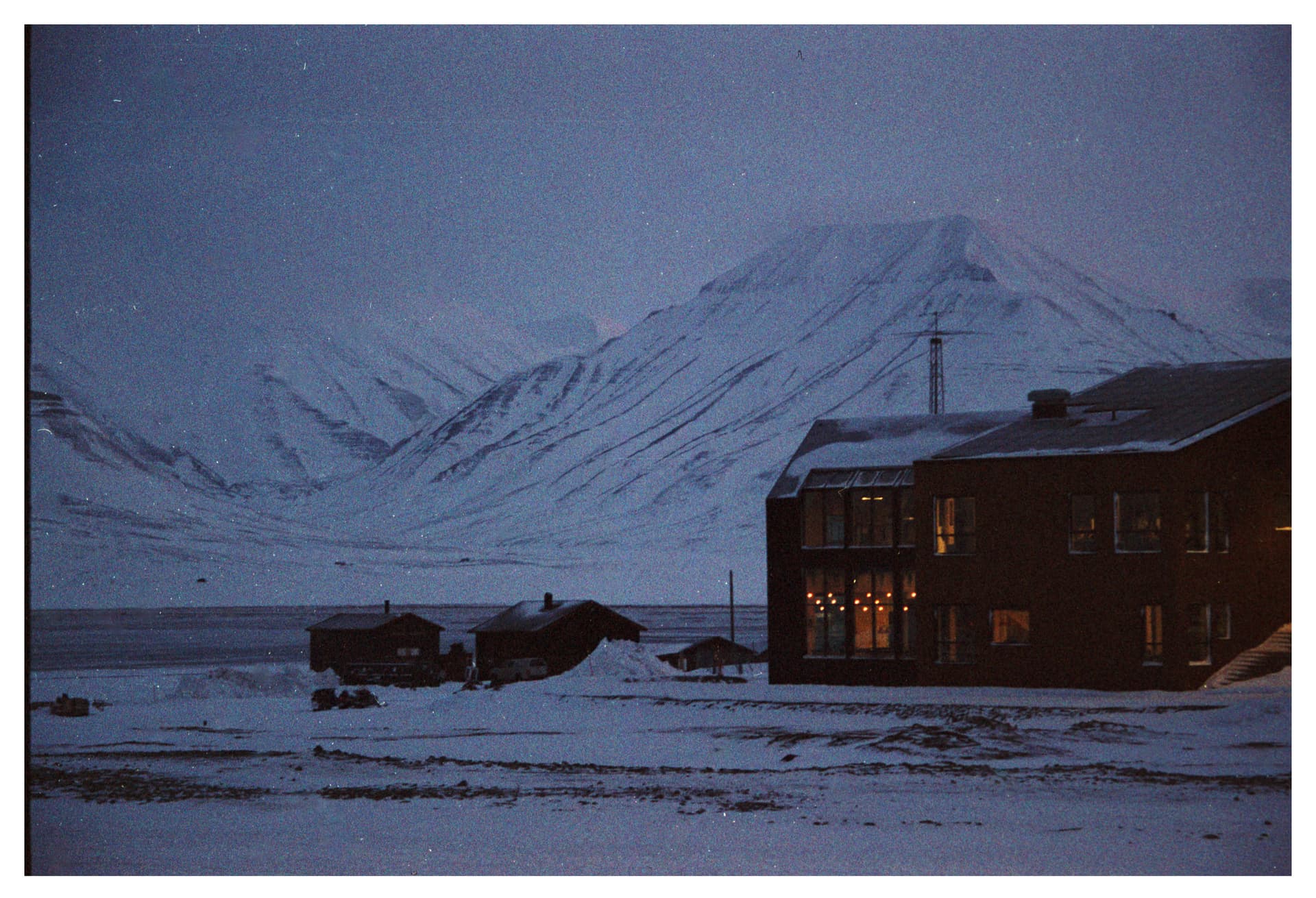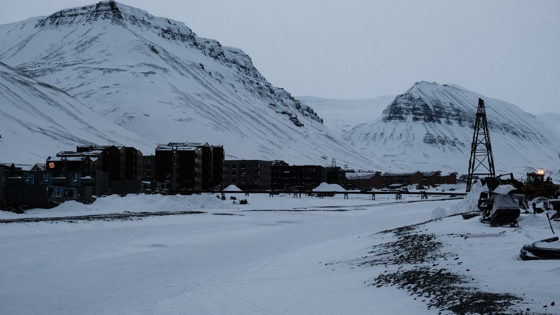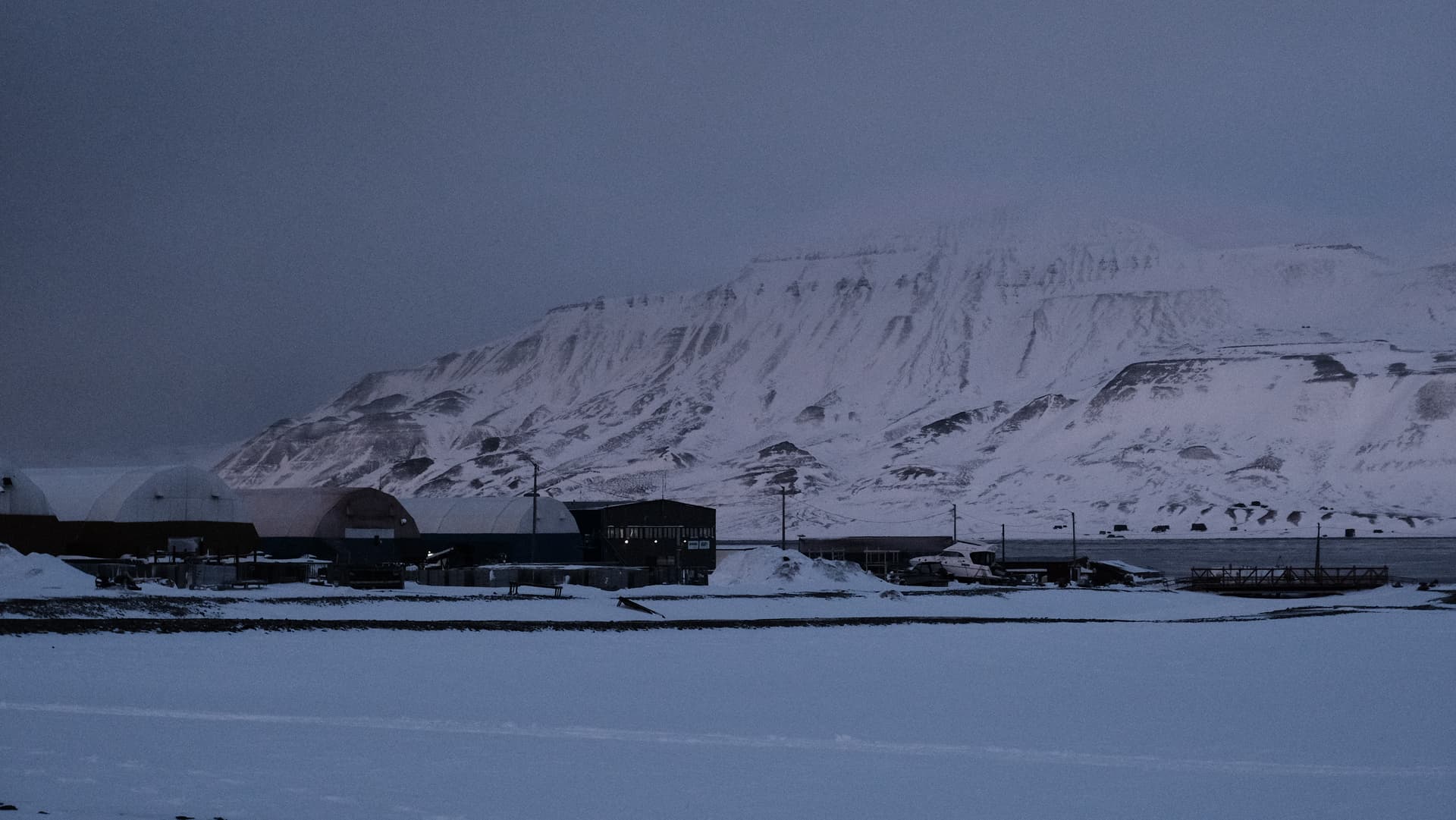 这里是字面意义上世界最北端的人类定居点。北纬78度的北极冻原里,极夜从十月末一直持续到二月中。距离这里更远的人类活动点是70英里外的新奥勒松(Ny-Ålesund),那里没有常驻居民,只有包括黄河站在内的各国科考站。