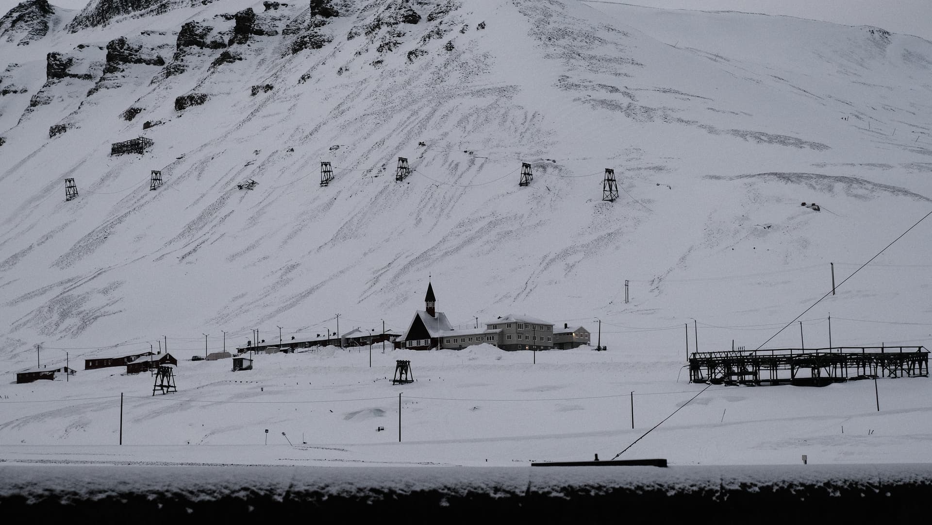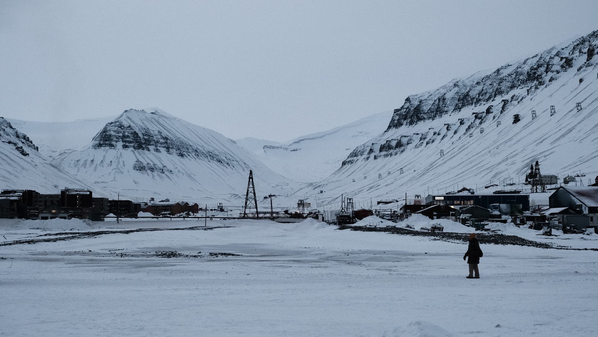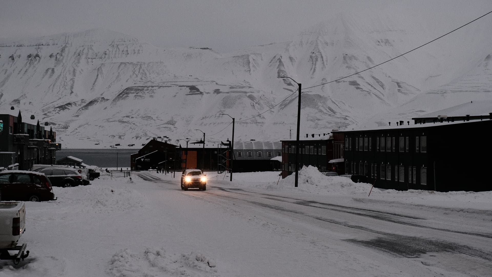 这里是字面意义上世界最北端的人类定居点。北纬78度的北极冻原里,极夜从十月末一直持续到二月中。距离这里更远的人类活动点是70英里外的新奥勒松(Ny-Ålesund),那里没有常驻居民,只有包括黄河站在内的各国科考站。