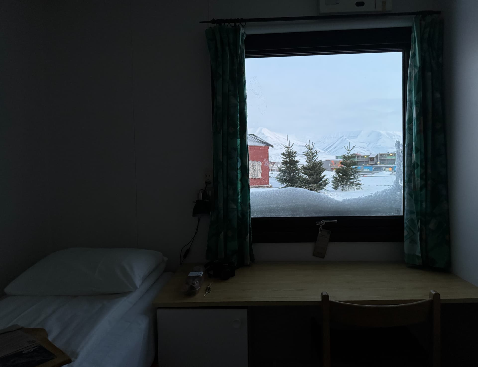 朗伊尔城很小,几乎没有太多常驻人口,大部分都是短暂停留在这里工作的居民。小镇总共只有十座左右的旅馆,除了Radisson之外没有连锁的选择。此次入住了三晚的Mary-Ann’s Polarrigg,Single Room, Shared Bathroom 的房型,总共$395. 不算便宜,但考虑到地理位置还是比较划算。