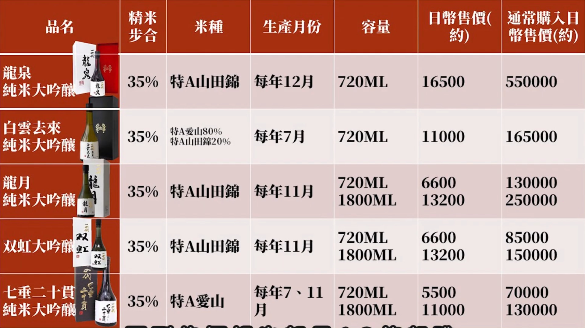 | 定価(1800ml) | 33,000円(720ml) |