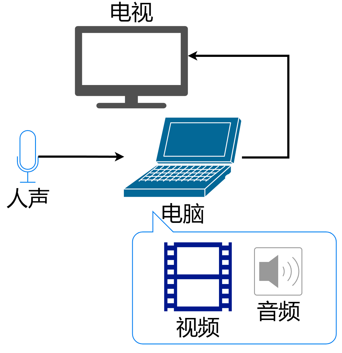 这里其实我们有很多的选项。需要注意的是,因为我们需要在歌曲音视频和人声音频输出到电视之前进行混音操作,所以(大概)无线投屏是没法奏效的——因为投屏到电视上我们就没法混音了。如果有大佬知道哪些骚操作可以绕过这个限制,欢迎指出。
