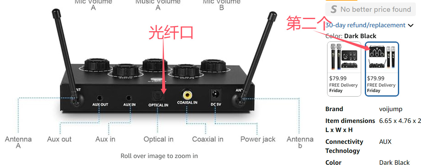 如果你的电视没有3.5mm接口,可以看看有没有光纤音频接口。上面的混音器产品页有两个产品,第二个是支持光纤音频的。只要把上面电视到混音器的3.5mm连接线换成一根光纤音频线。类似这种