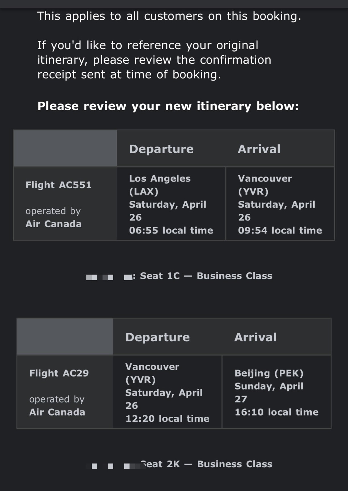 查了一下,原来是iad航班拉直取消经停洛杉矶导致的取消,那只能改别的日期的航班了。国航lax好像都是用无头等的777飞,降舱看来比较难避免