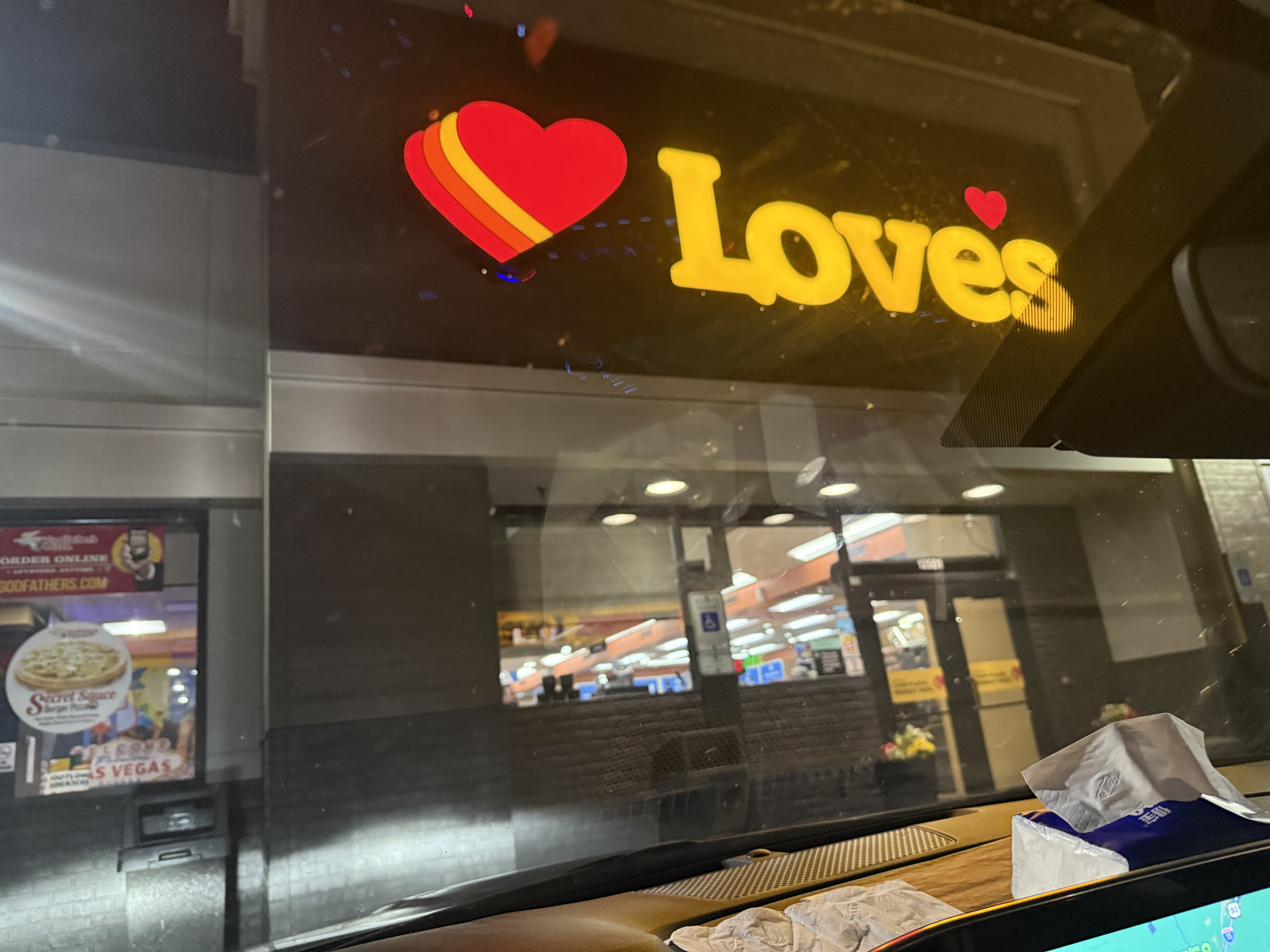 Love‘s 好处就是可以洗澡,gas 也很便宜,随便找个地方睡觉就行,也没人管你,荒郊野岭也没人打扰