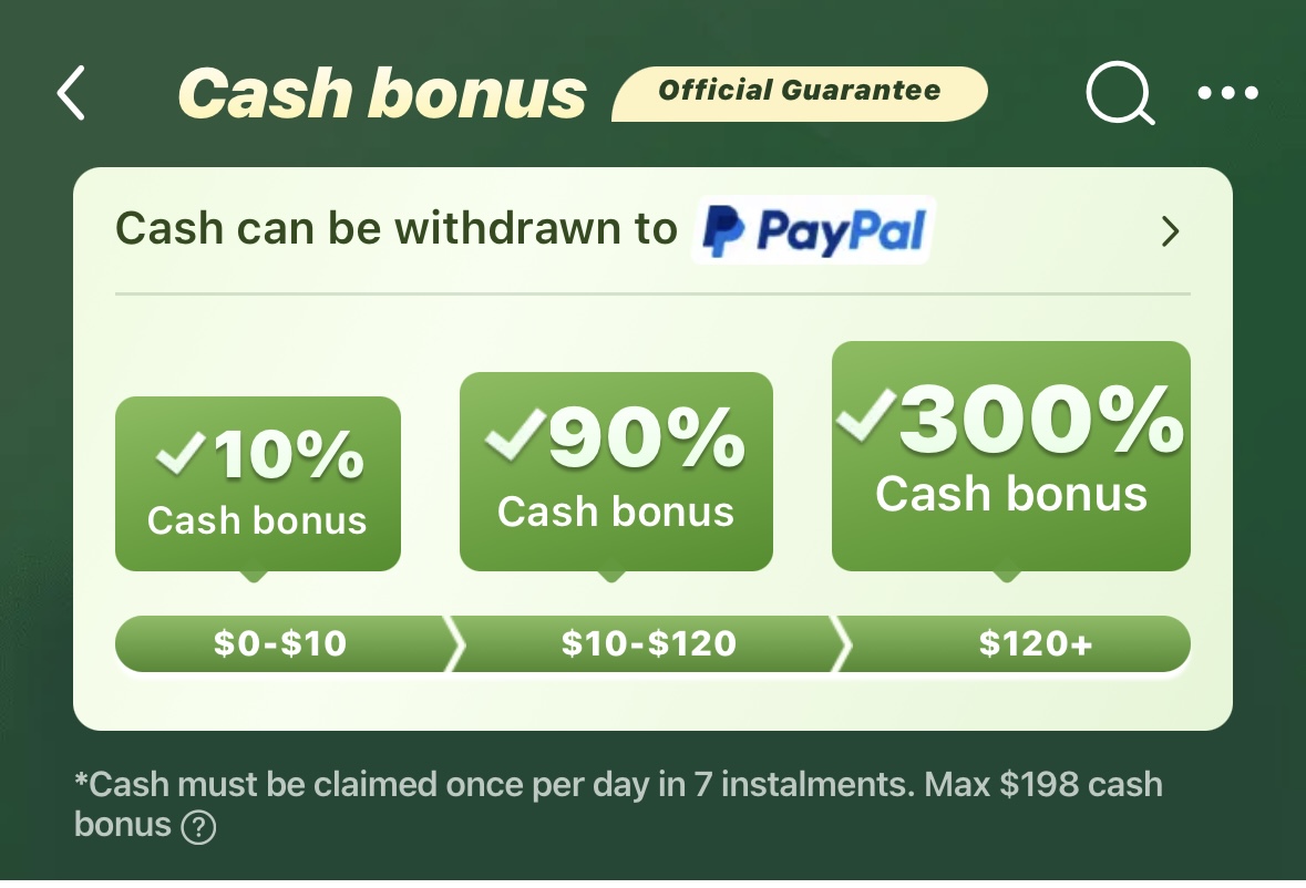TEMU的花活, 反现变成7 days install,miss一天就完。然后半路再给你出个买20一天拿走,结果啥都没有。坚持刷满7天就好