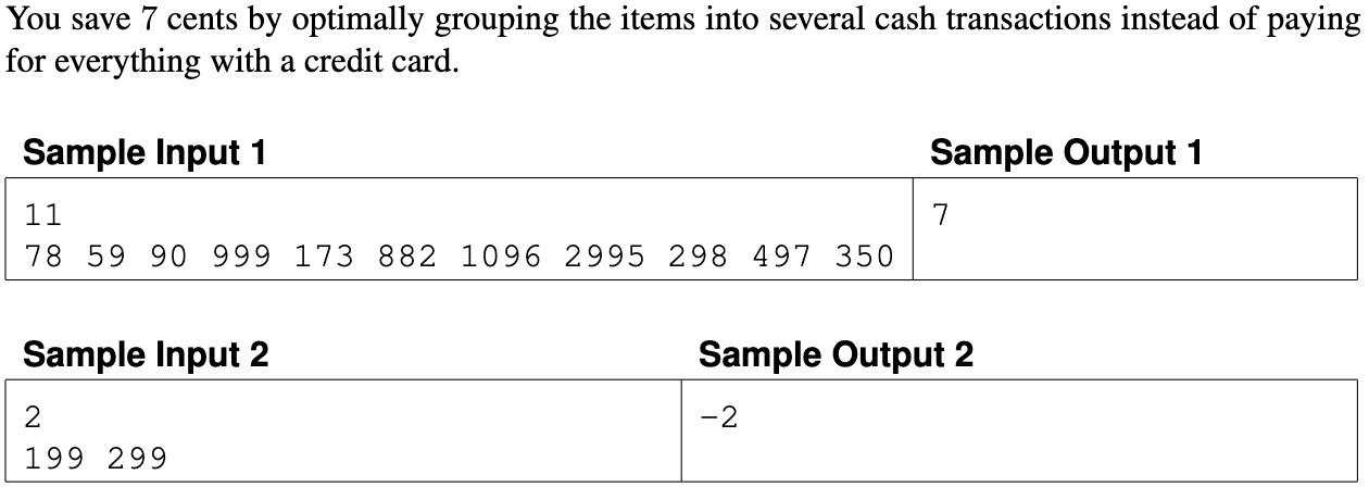 Kattis 链接:I Don't Miss Pennies – Kattis, Kattis